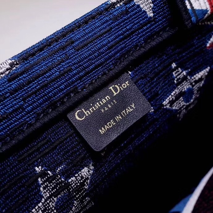 Maria Grazia Chiuri reinterpreted the House’s iconic Book Tote in red, white, and blue to commemorate Christian Dior’s maiden journey to the United States in 1947. He made the transatlantic trip to accept the prestigious Neiman Marcus Award in Dallas, Texas just a few months after launching his first collection in Paris. This tricolor canvas bag featuring over a million embroidery stitches celebrates the ties that bind the couturier to the U.S. and the visits to New York, Los Angeles, and Chicago that inspired his work for years to come.
