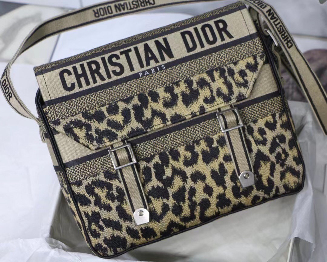 The Diorcamp bag is Maria Grazia Chiuri's update to the classic messenger bag, with signature Dior elements for a relaxed yet contemporary look. The bag is fully embroidered with a beige multicolor Mizza motif, inspired by the leopard pattern from the House archives and features the 'CHRISTIAN DIOR' signature on the front. Its spacious form and comfortable over-the-shoulder or crossbody wear make it an ideal daily companion.