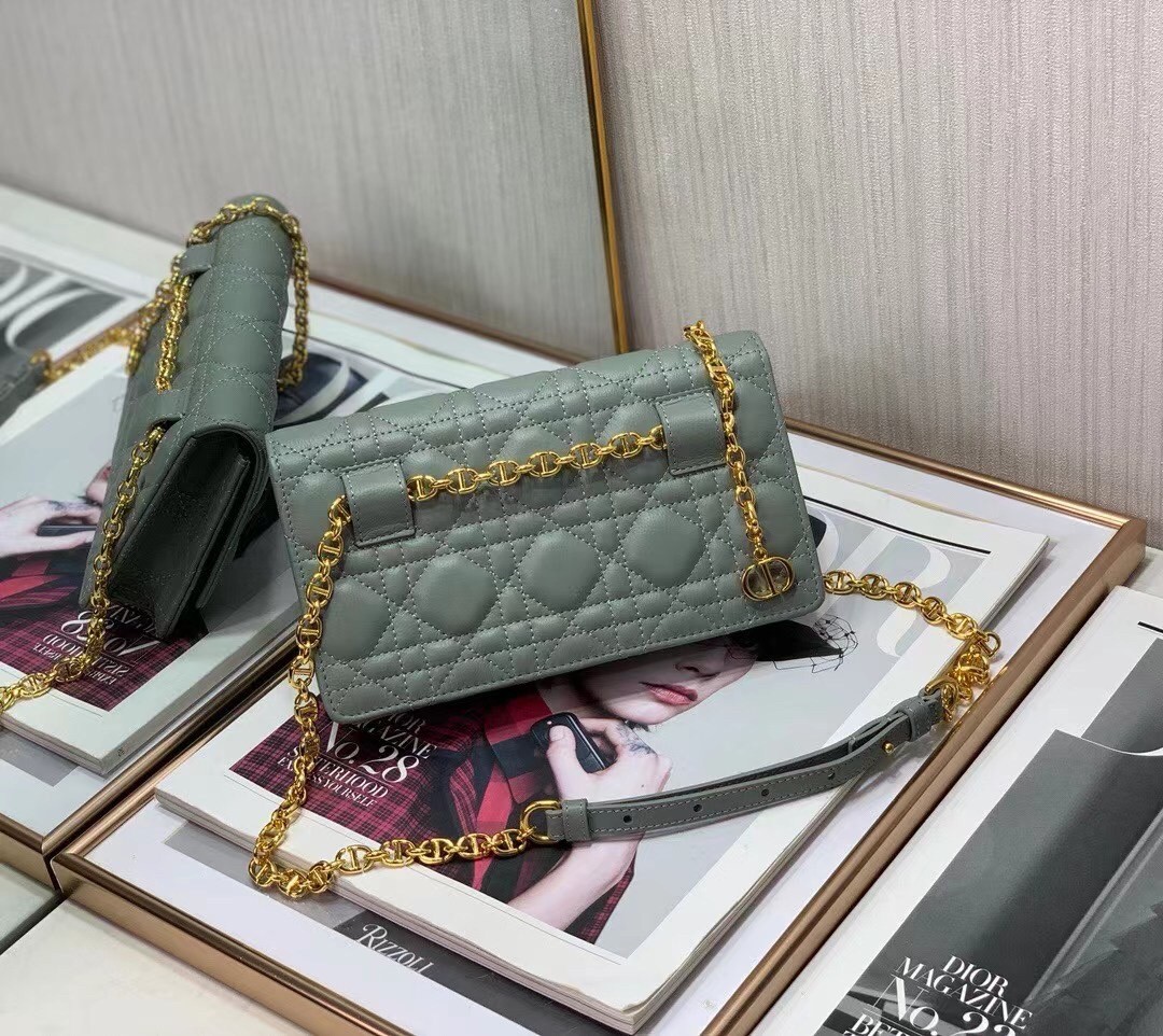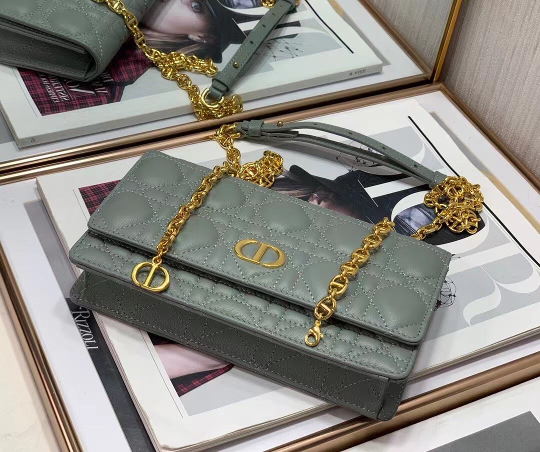 The Dior Caro belt pouch is a hybrid and elegant accessory. Crafted in supple calfskin with Cannage stitching, it has a 'CD' signature flap. The adjustable chain allows the pouch to be worn at the waist or crossbody, while the adjustable leather band offers a comfortable shoulder or crossbody wear, making it an ideal day or evening accessory.