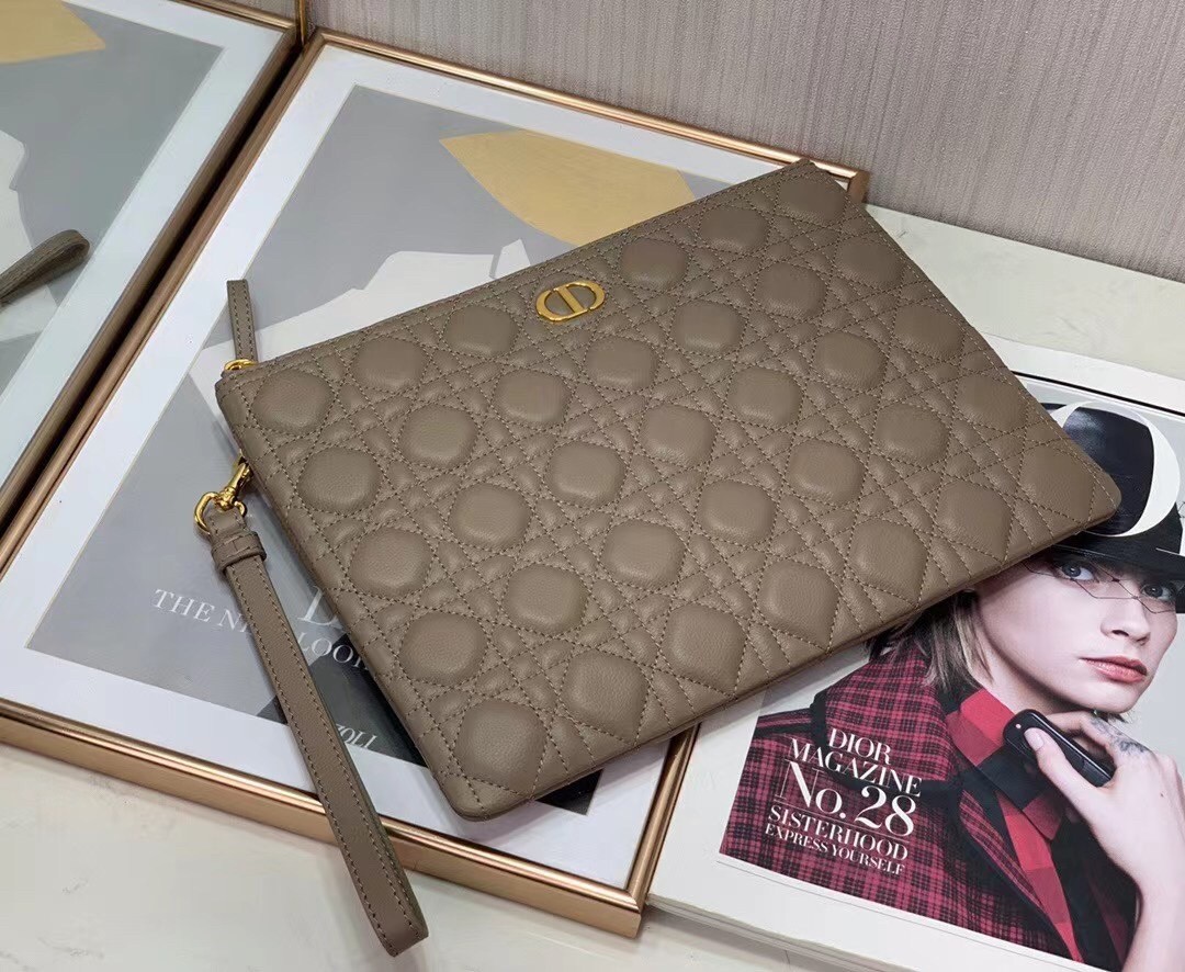 Dior Large Caro Daily Pouch In Beige Calfskin