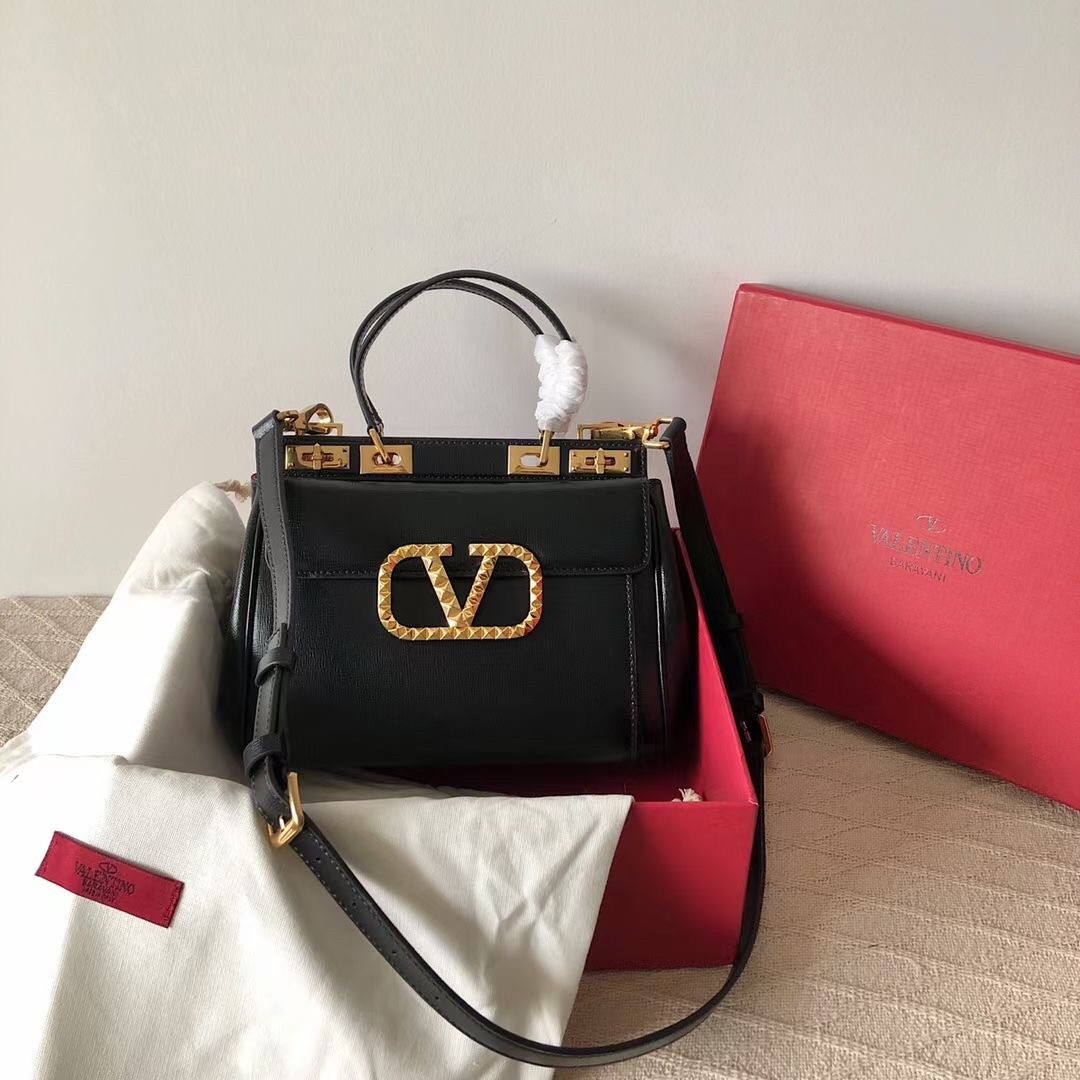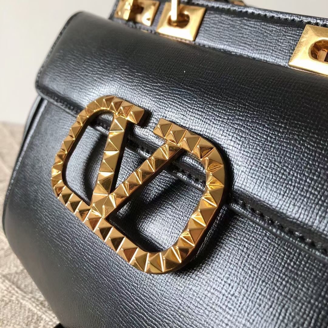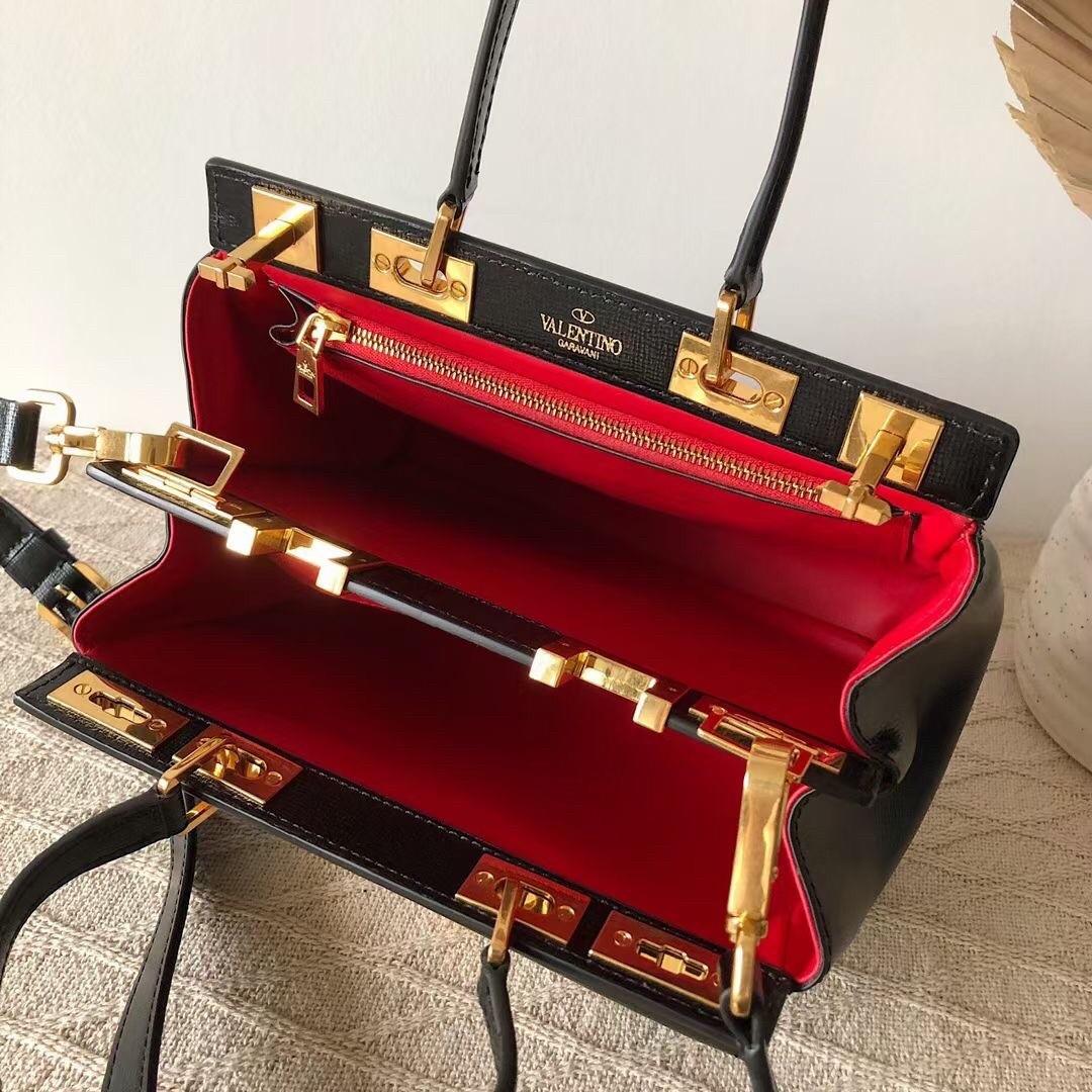 Making a daring addition to your collection of Valentino Garavani accessories, the Rockstud Alcove range presents the top-handle bag. Crafted from leather with a haircalf exterior, this striking design boasts a boxy silhouette that opens at the top courtesy of a gold-tone clasp. Carry it in your hand or wear it across your body with the detachable shoulder strap.