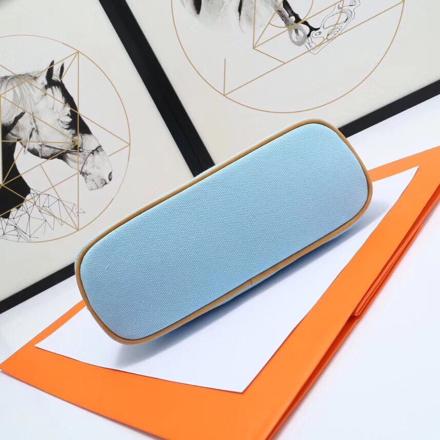 Hermes Medium Bolide Travel Case In Blue Lin Cotton