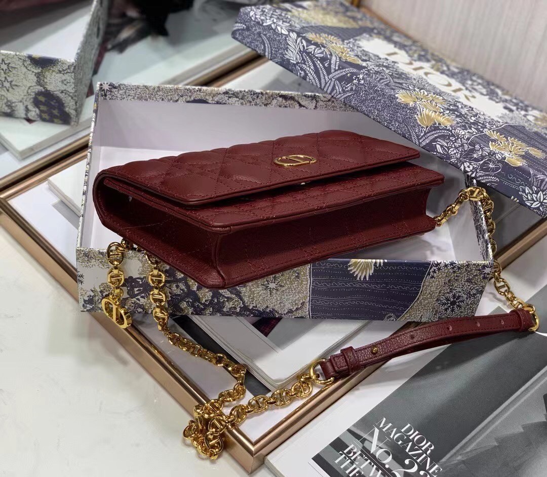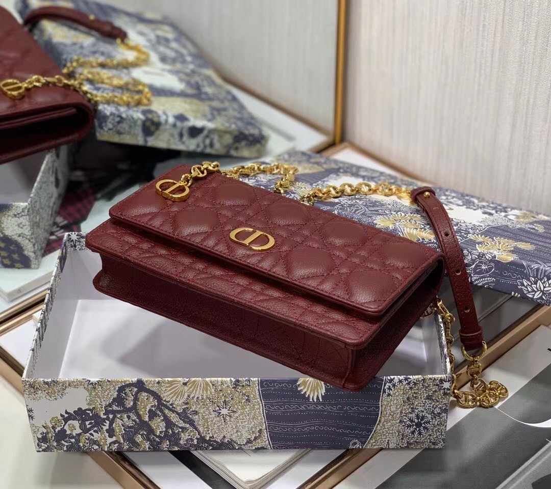 The Dior Caro belt pouch is a hybrid and elegant accessory. Crafted in supple calfskin with Cannage stitching, it has a 'CD' signature flap. The adjustable chain allows the pouch to be worn at the waist or crossbody, while the adjustable leather band offers a comfortable shoulder or crossbody wear, making it an ideal day or evening accessory.