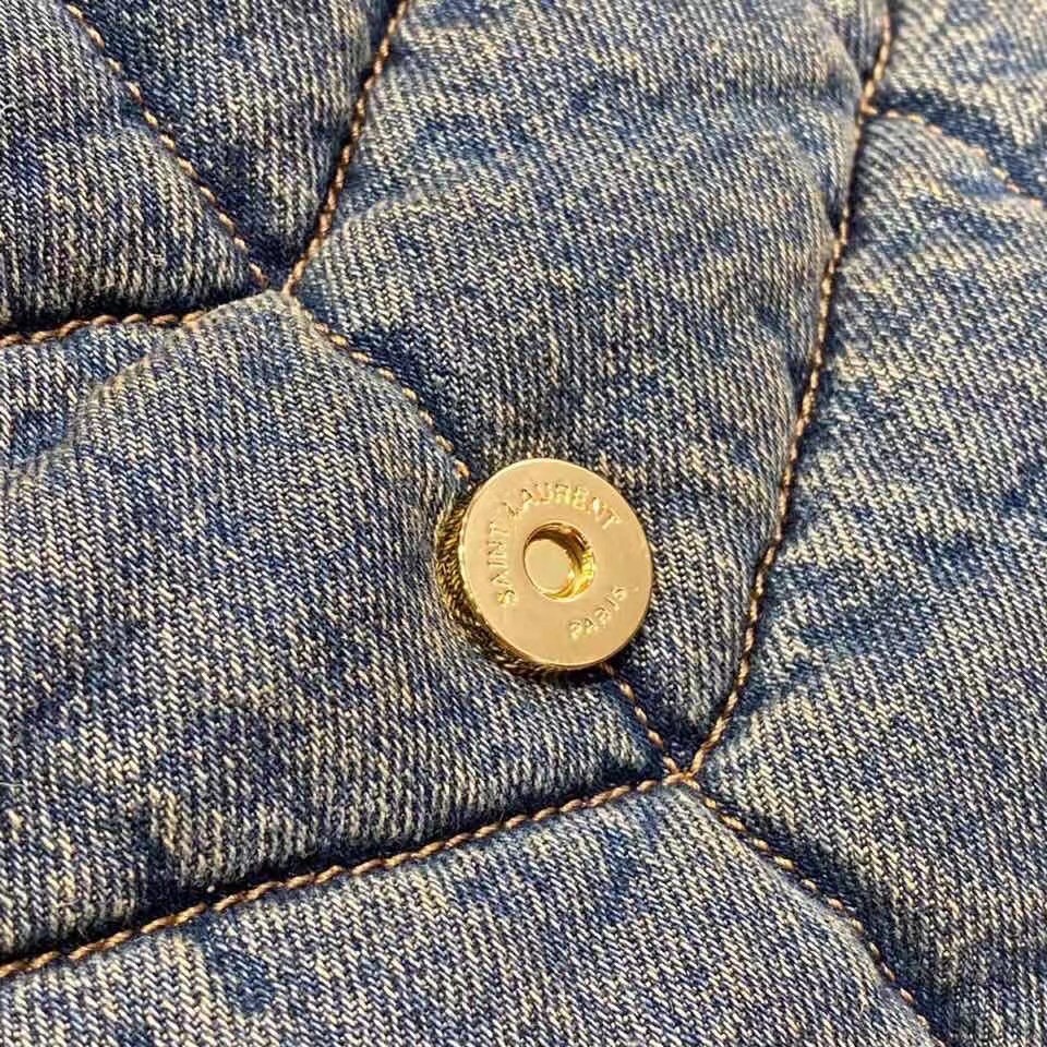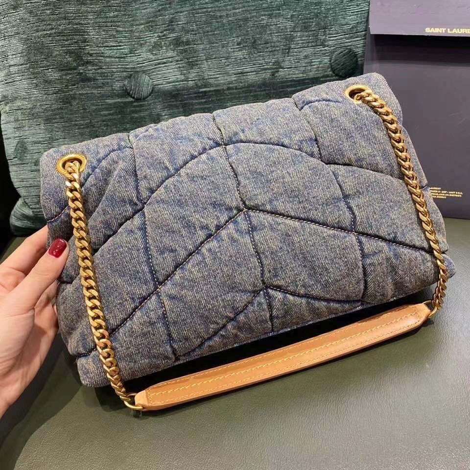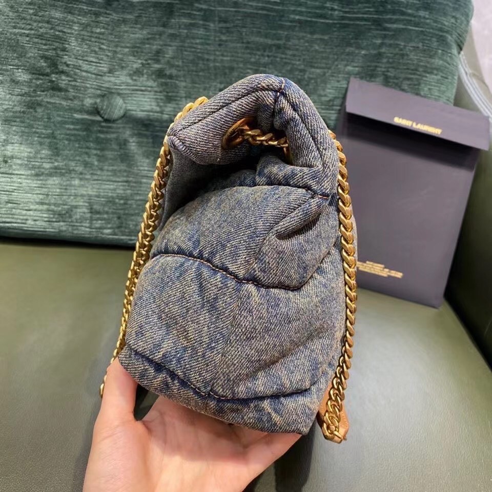 The quilted denim of Saint Laurent's Loulou Puffer small shoulder bag gives it real '90s appeal. Named after the founder's muse and close friend, Loulou de la Falaise, it's trimmed with suede on the gold-tone chain strap and has an antiqued gold 'YSL' plaque. The interior zipped pocket is perfectly sized to secure your cell phone and compact.