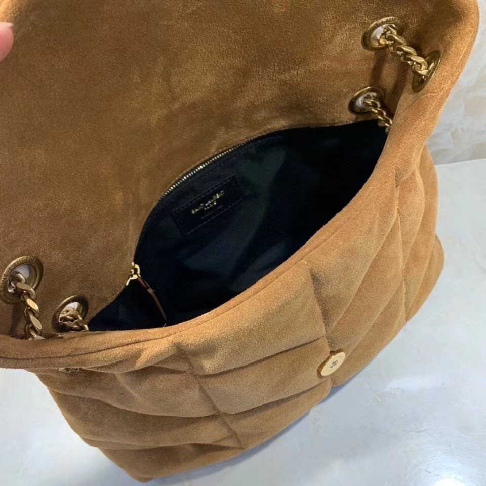 Named after Yves Saint Laurent's muse and dear friend Loulou de la Falaise, the Loulou Puffer bag is instantly recognisable thanks to its softly padded quilting. Echoing the vintage sensibilities of Parisian bohemia that lie at the heart of the Maison, the supple suede piece proudly hosts the iconic monogram punctuating its front flap – an inimitable emblem of utmost luxury since the 1960s.