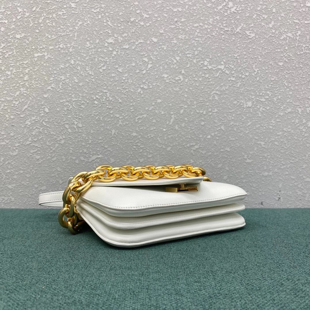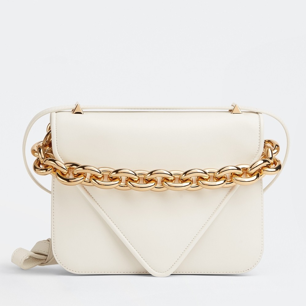 Bottega Veneta puts its unique twist on the classic satchel with the Mount shoulder bag. Though absent of the brand’s signature weaving, this smooth leather silhouette remains a recognisable member of the Bottega Veneta family thanks to the gleaming gold-tone chain that serves as a practical top handle. Keep essentials secure and close to hand within the bag’s spacious interior when you’re on the go.