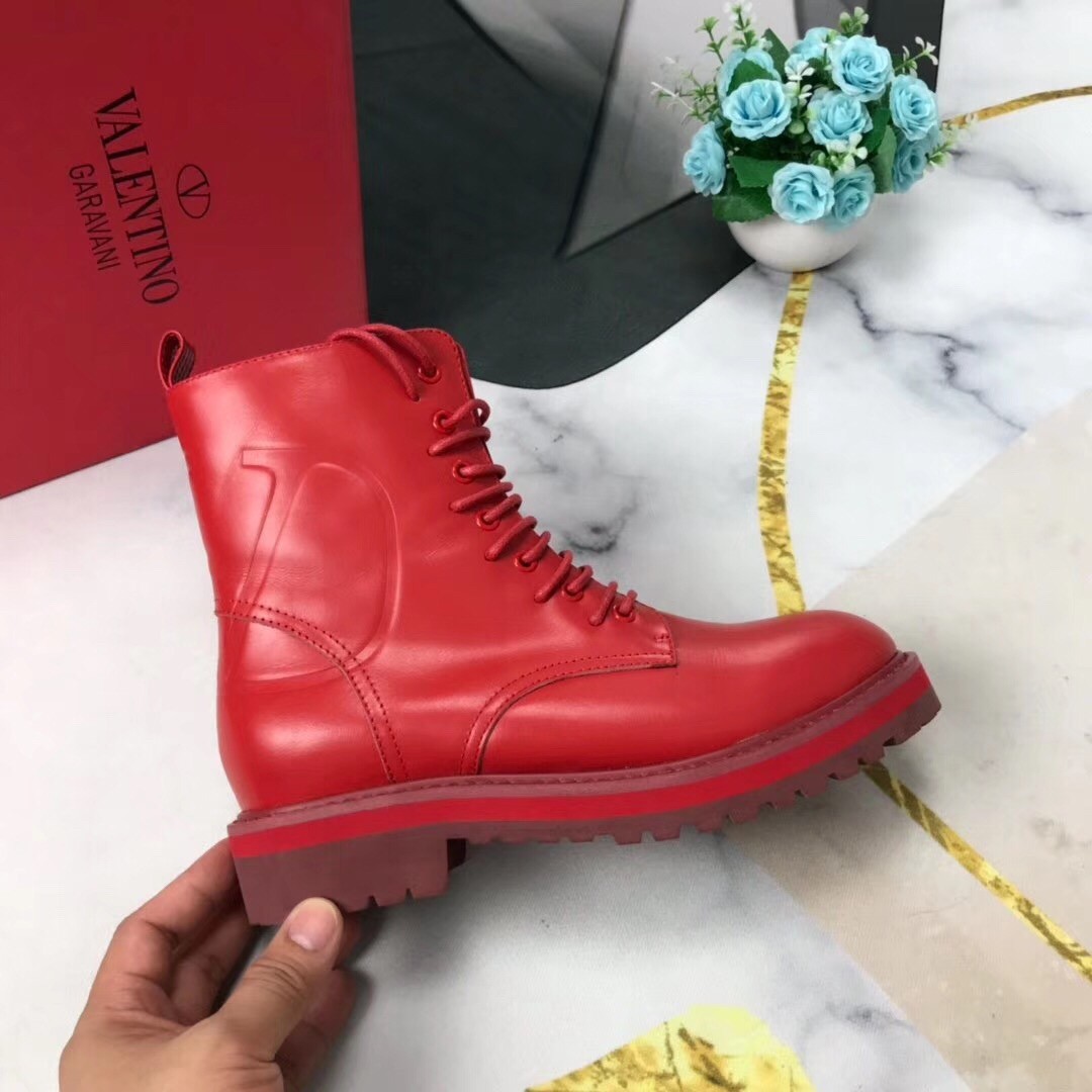 Valentino Red Leather VLogo Combat Boots