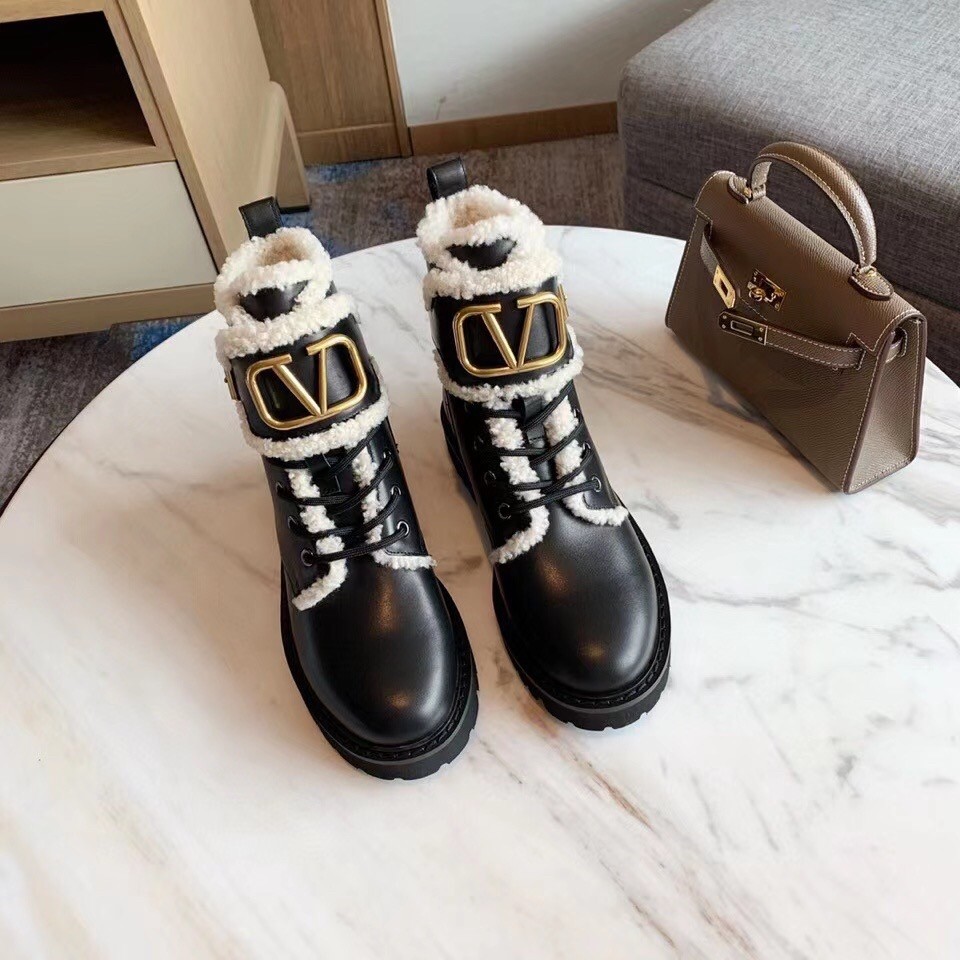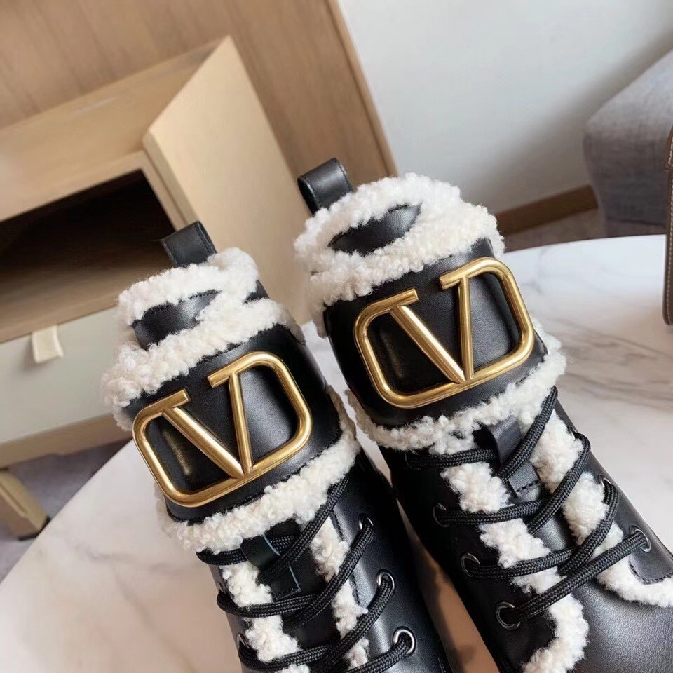 Valentino Garavani's 'Go Logo' boots are adorned with unmissable gold hardware. They’ve been made from smooth black leather and lined with soft, cozy shearling. Lace them up with cropped jeans or midi dresses.