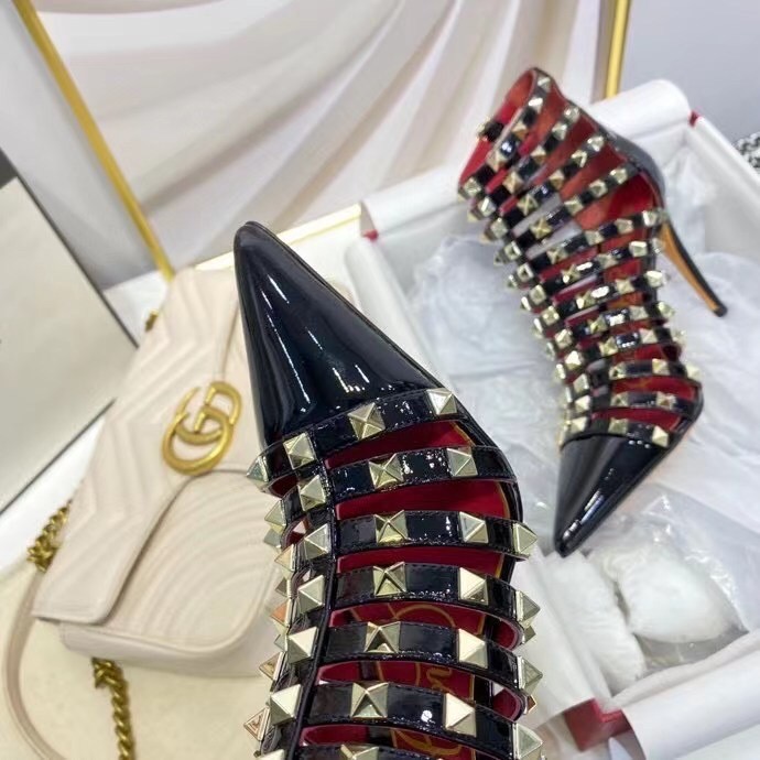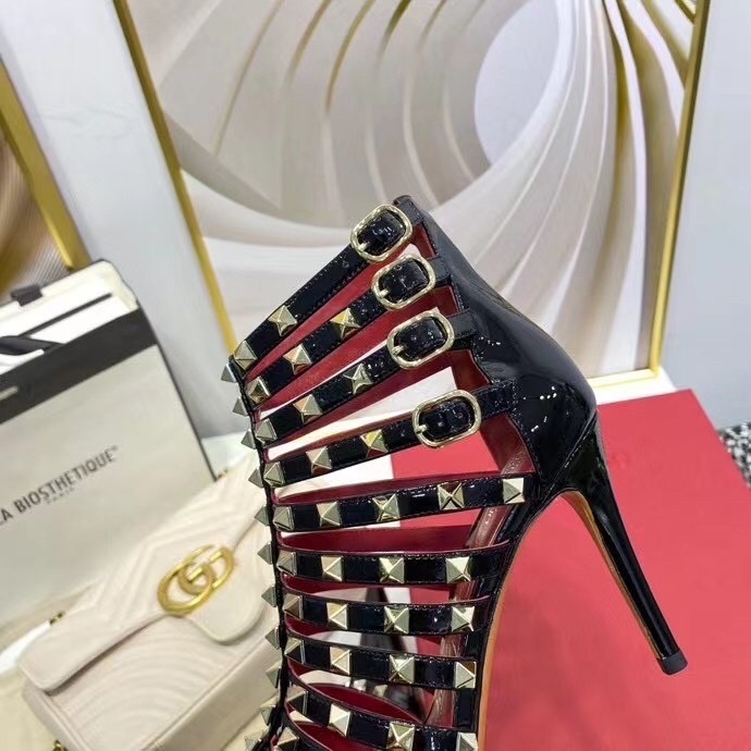 Valentino Rockstud Alcove Boots In Black Patent Leather