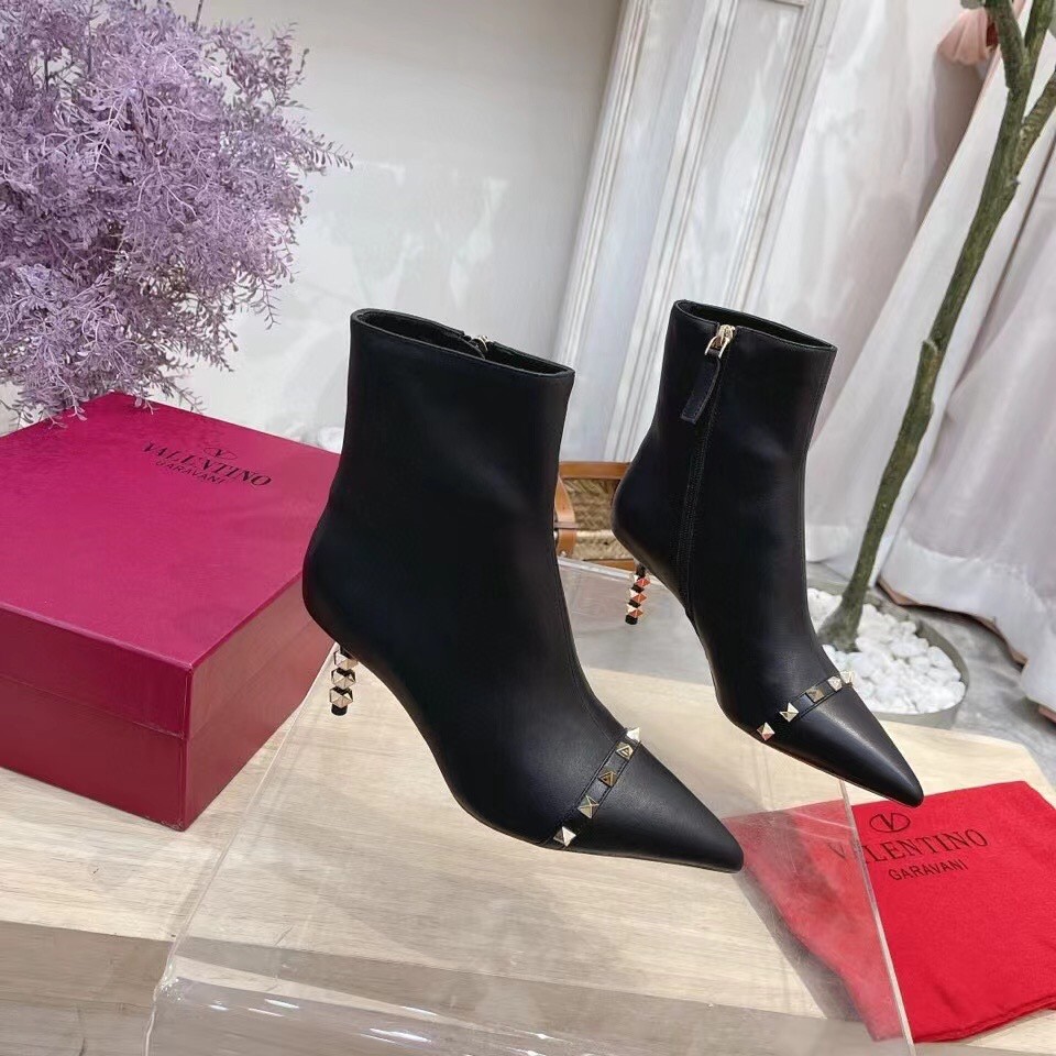 Valentino Black Rockstud Ankle Boots with Sculpted Heel