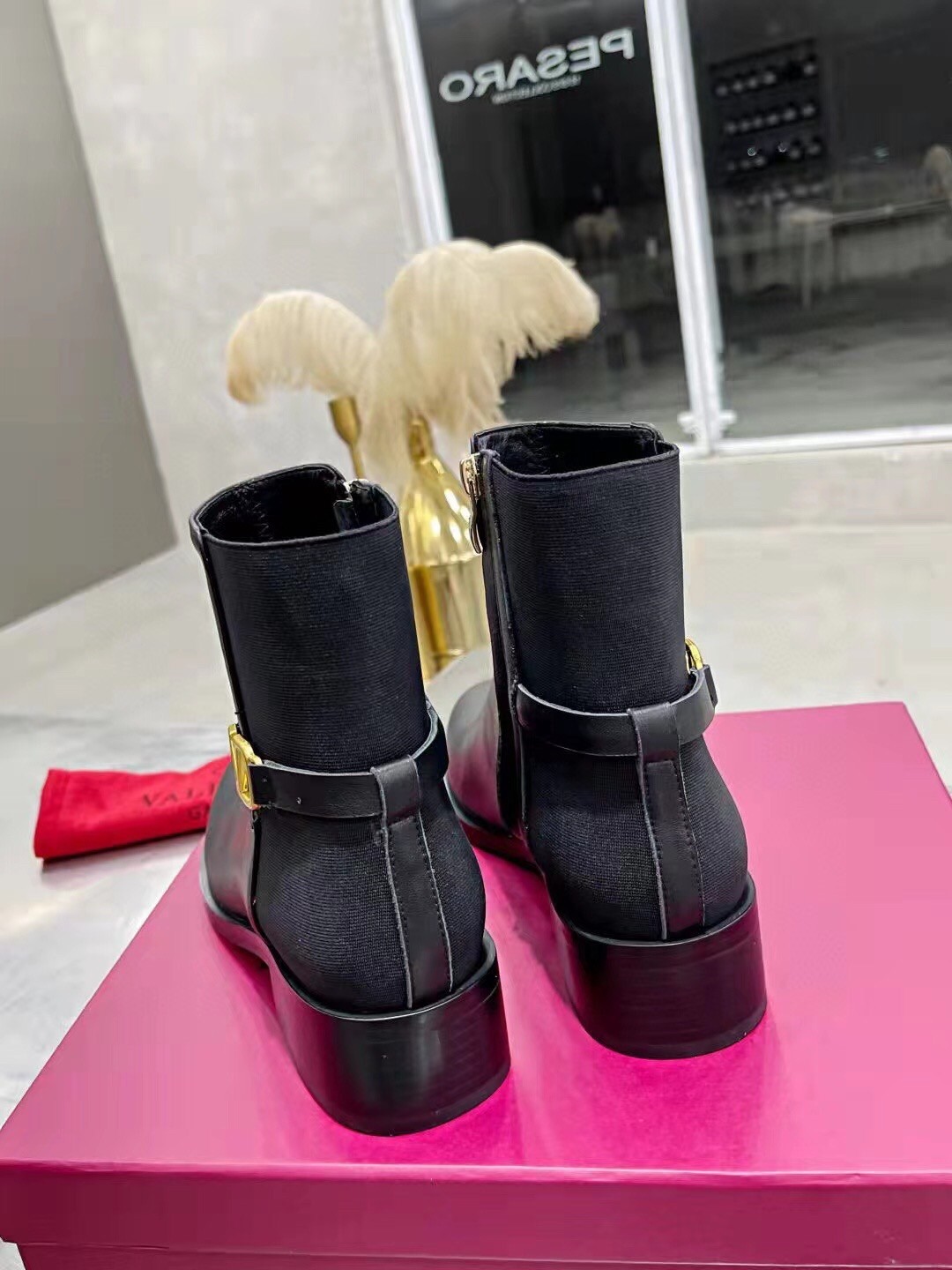Golden VLOGO hardware instantly sets these ankle boots apart as a Valentino Garavani creation. They have been made from a combination of smooth calfskin and, for the most comfortable stride, stretch knit.