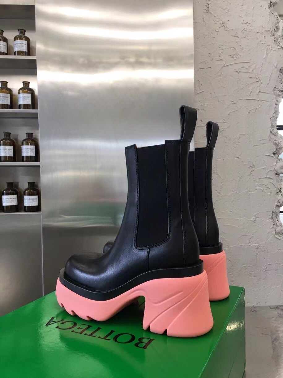 Inspired by supercars, Bottega Veneta’s black Flash boots are characterised by the pink rubber outsoles and block heel that are chunky yet lightweight and flexible. They’re made from vegetable-tanned leather with a round toe, elasticated side gussets and a heel pull.