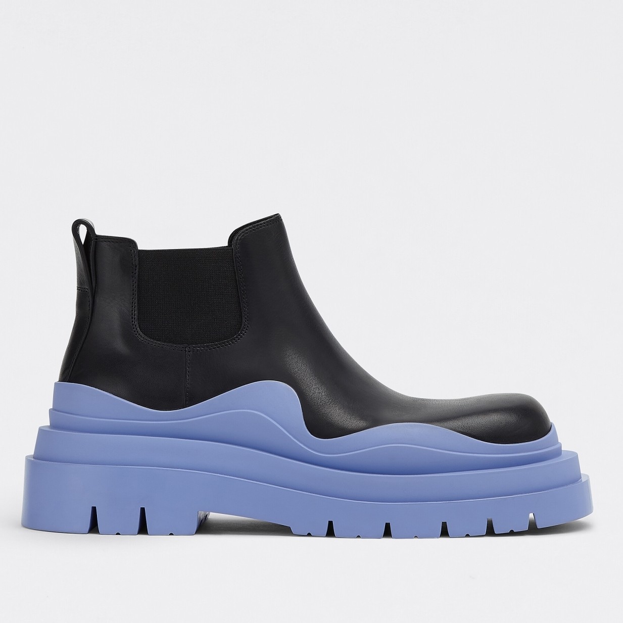 A perfect combination of minimalist and modern aesthetics, these Tire boots by Bottega Veneta are defined by their chunky tread soles with a wavy edge. This iteration features a clear-cut duo-tonal façade, lending your urban ensembles a striking finish.