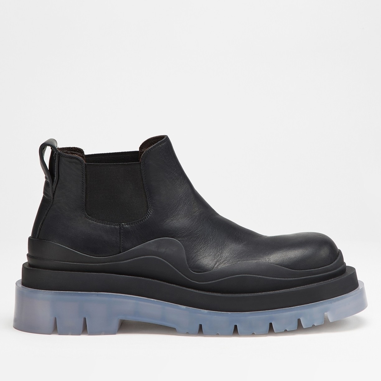 Bottega Veneta's Tire ankle boots are destined to top the wishlists of devout fashion followers and urban explorers alike. A shorter iteration of the lug-sole silhouette from the brand's Pre-Fall '20 lookbook, this black leather pair has Chelsea-boot styling with gusseted sides and rear pull tabs. Transparent soles, meanwhile, make them wholly unique.