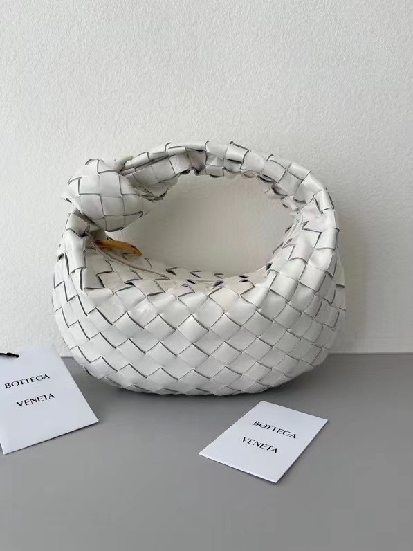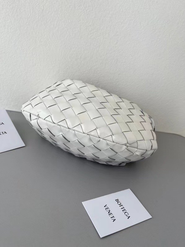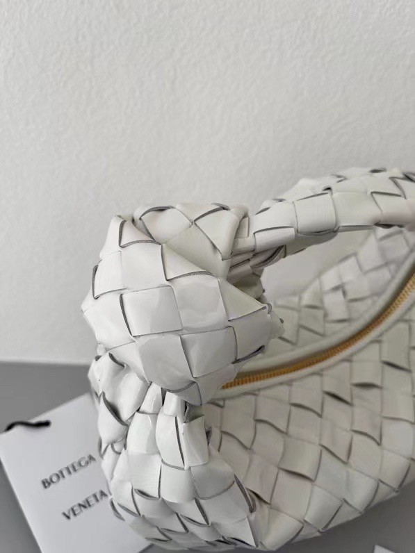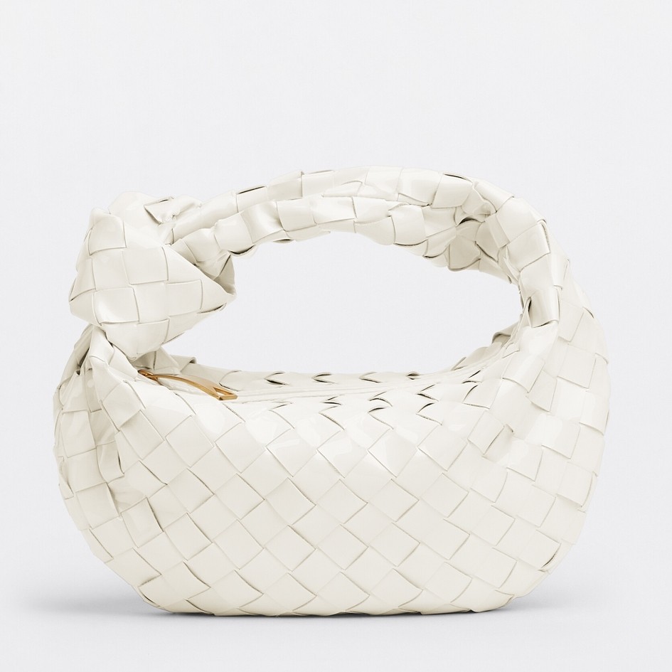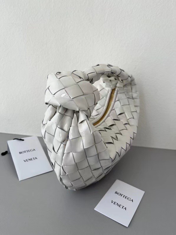 Bottega Veneta BV Jodie Mini Bag In White Intrecciato Patent Leather