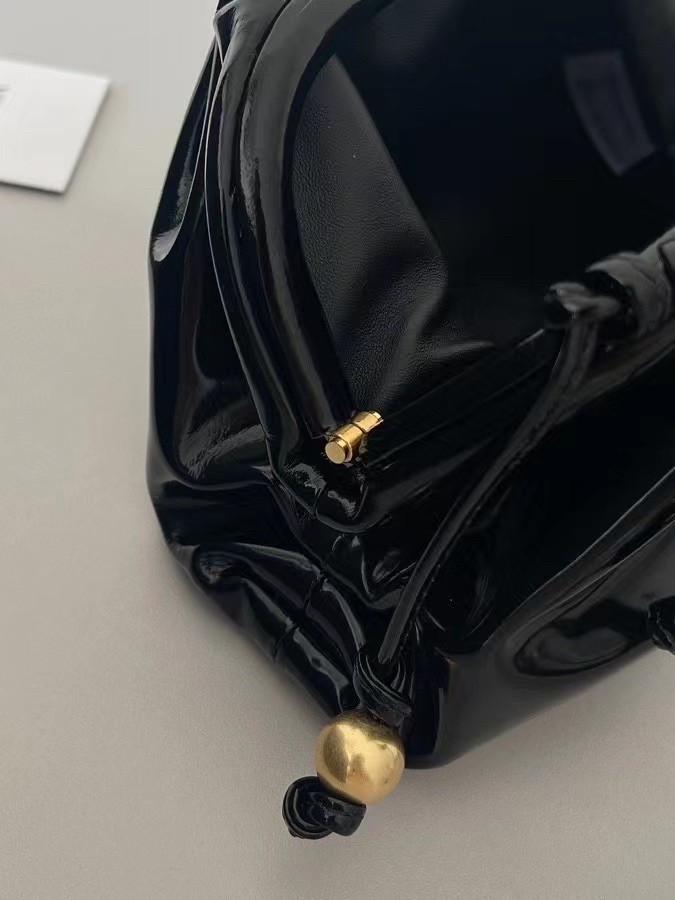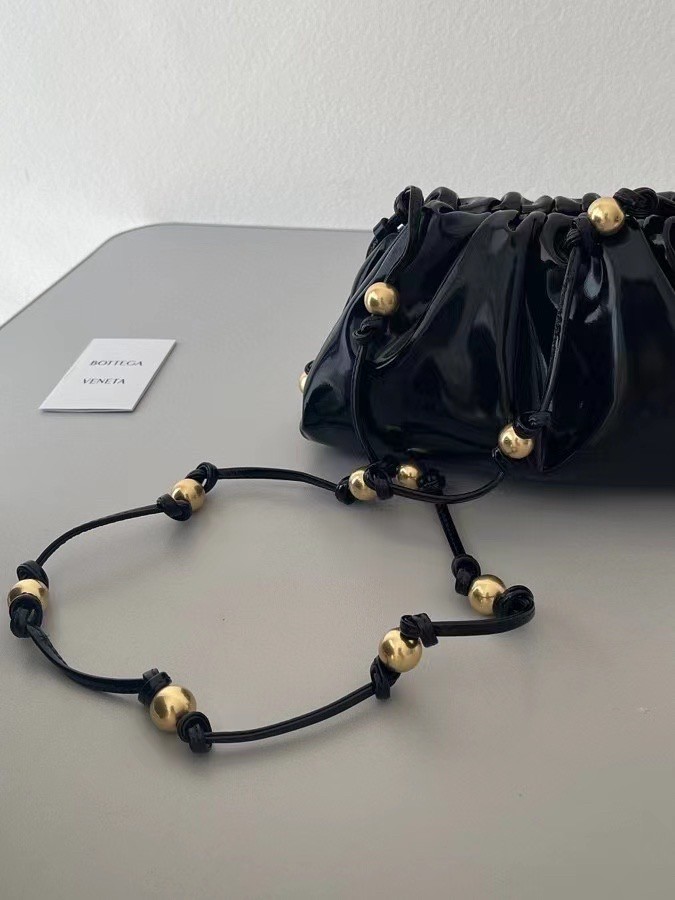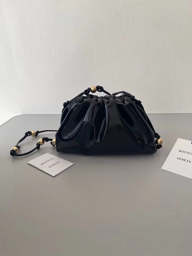 Bottega Veneta's The Pouch clutch is even more unmissable in patent-leather - the glossiness highlights every fold and complements the signature shape. It's updated with gold-tone spheres and has just enough room inside for the essentials.