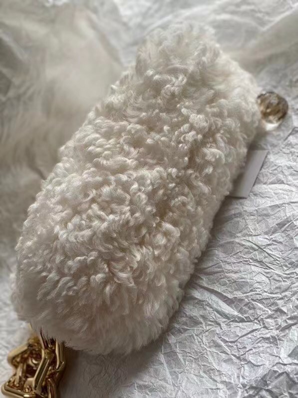 Bottega Veneta's The Chain Pouch proves what a beautiful combination fluffy shearling and glossy hardware can be. It fastens magnetically at the top and opens to reveal a smooth leather lining. The square-link strap can be worn on the shoulder, attached at one side as a statement wristlet or removed altogether.