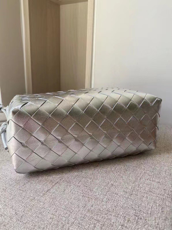 Bottega Veneta Small Loop Bag In Silver Intrecciato Lambskin