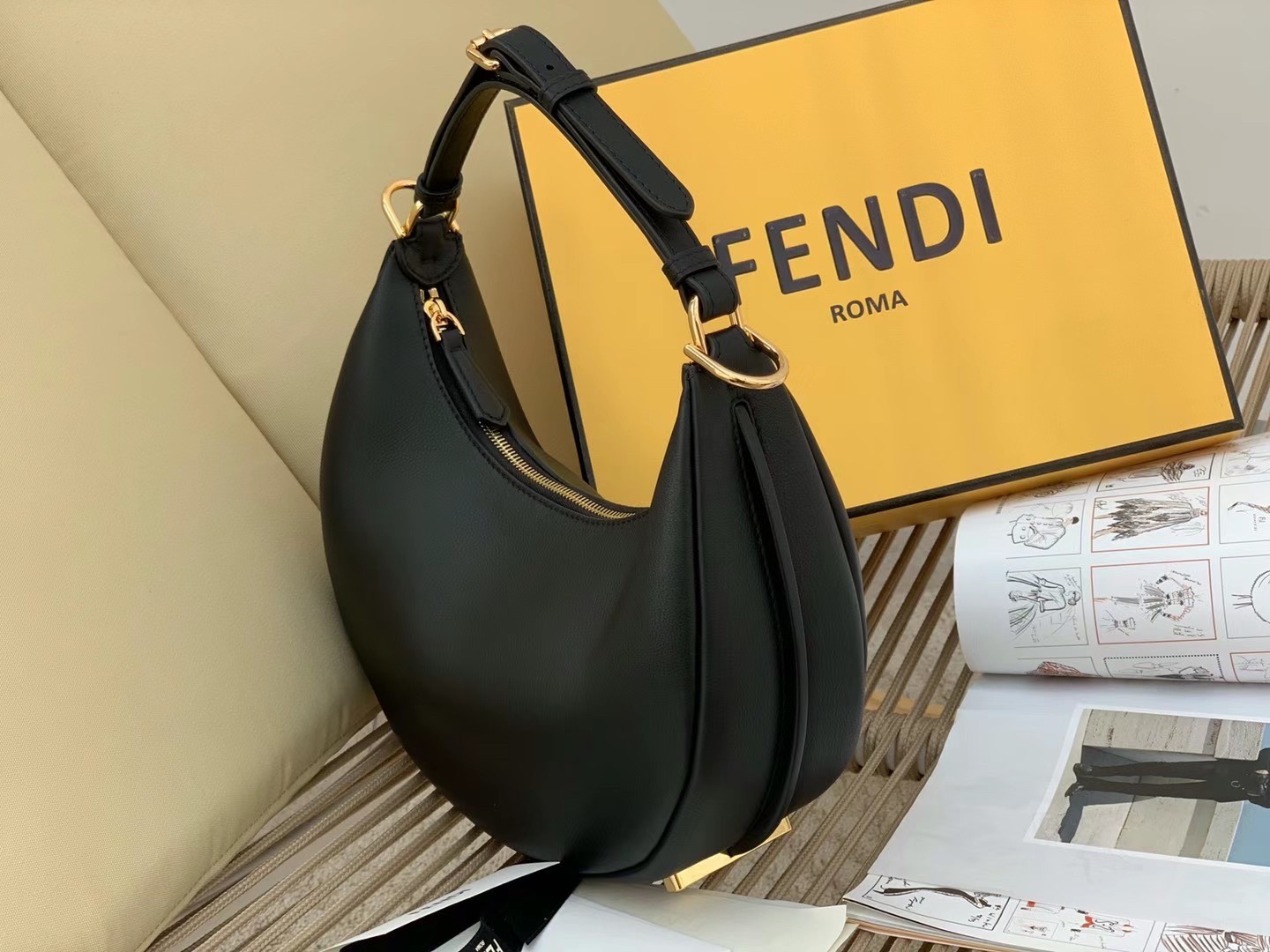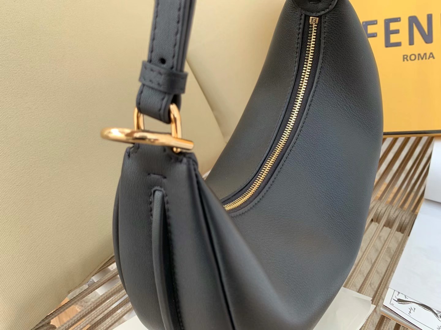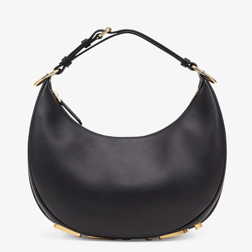 Revealed on brand’s Spring/Summer 2022 runway, the Fendigraphy Bag is Fendi’s take on the timeless hobo silhouette and the fashion crowd is already obsessed! Defined by a crescent shape with a spacious carry-all design, the Fendigraphy bag is a modern and bold icon – the new must-have for the powerful and confident Fendi woman. Once worn, the bag will stun with its maxi Fendi golden metal script, leaving the iconicity of the Maison’s logo on display for everyone to see. Wearability being so dear to Fendi, the bag fits perfectly under the arm thanks to its circular armhole. Its removable and adjustable strap allows you to transform it into a soft and supple satchel bag with a functional crossbody attitude if paired with a Strap You.
