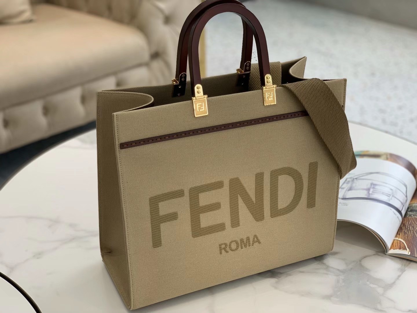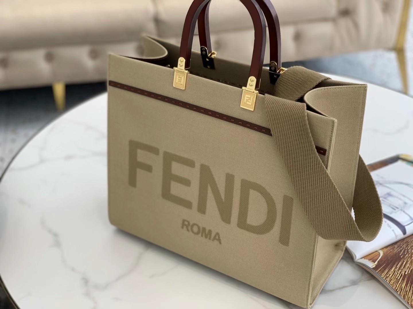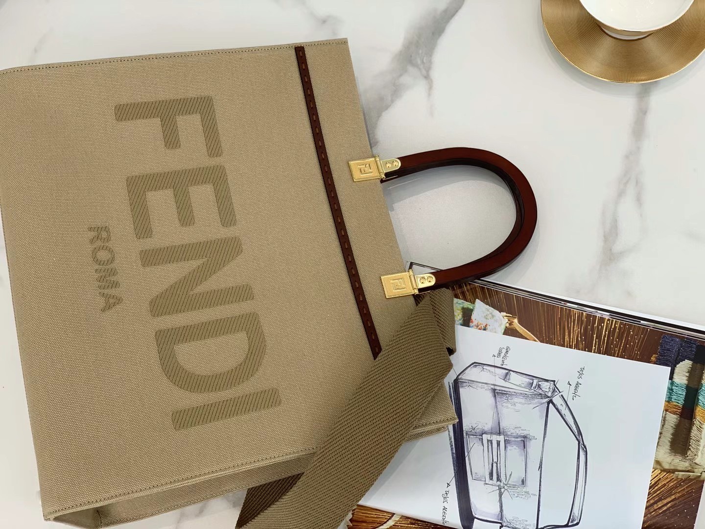 Fendi's Sunshine tote is spacious enough for all the daily essentials, from your laptop to a spare pair of pumps. This beige canvas version is embroidered with the brand's moniker at the front and topped with leather handles featuring logo-engraved gold hardware at both ends. Attach the shoulder strap to go hands-free.