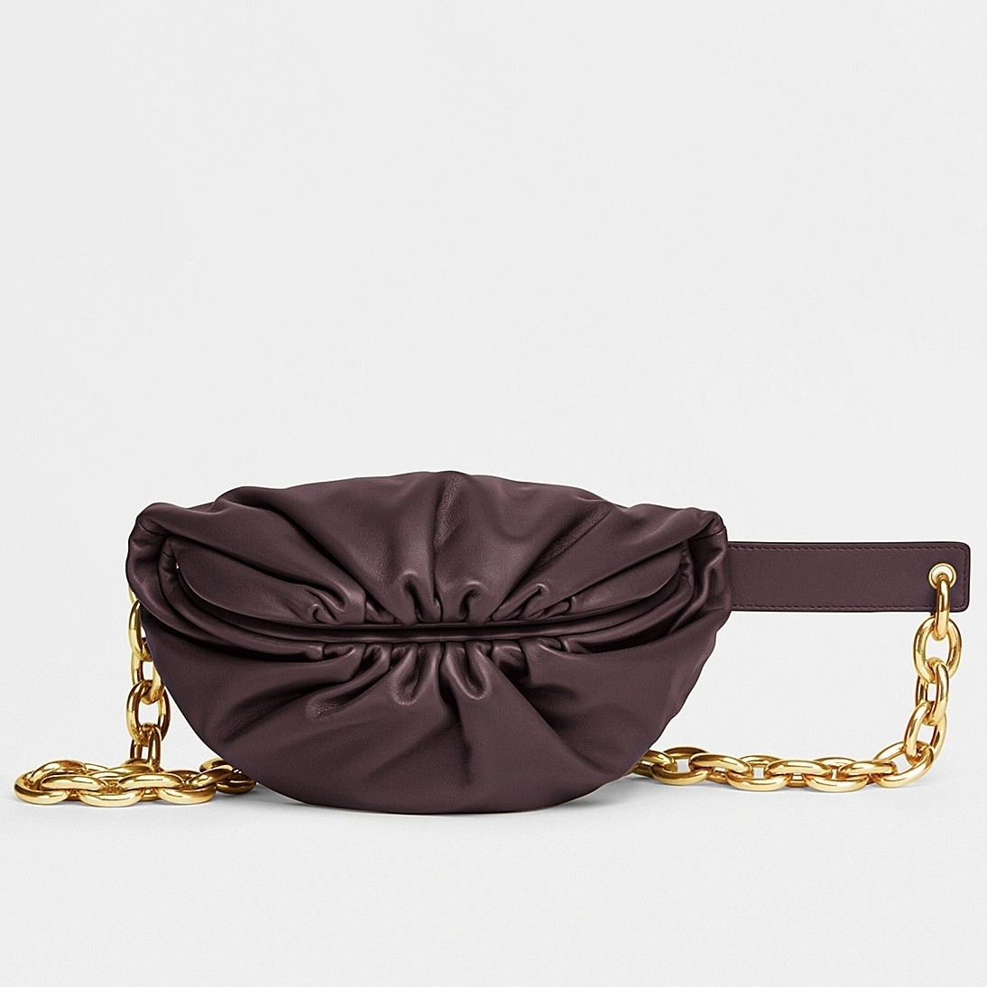 Daniel Lee re-invents Bottega Veneta's 'Pouch' style as a cool belt bag for Spring '21. It's been made from nappa leather in the iconic slouchy, gathered shape and has a magnetic fastening at the top to secure it closed. Adjust the chunky gold-tone chain to wear it at your waist or cross-body.
