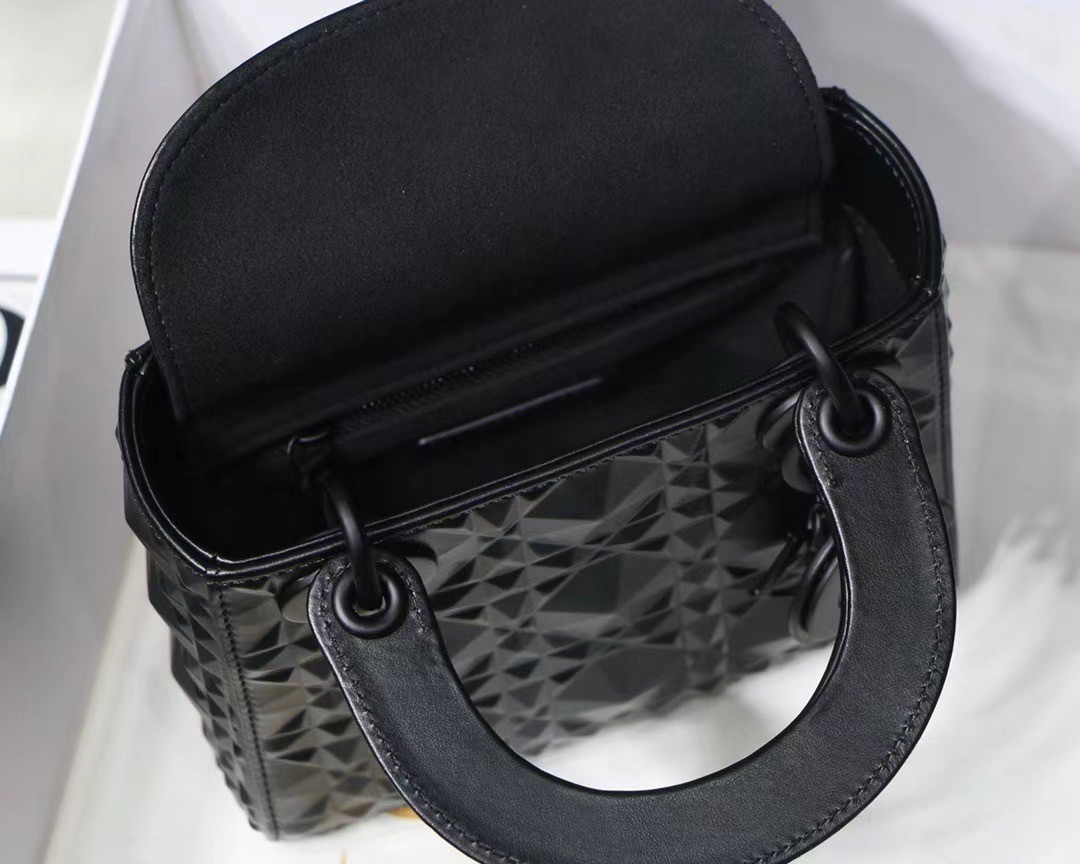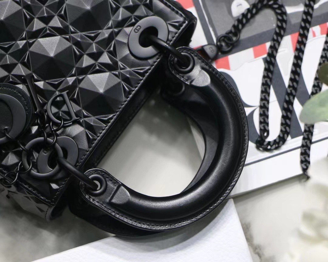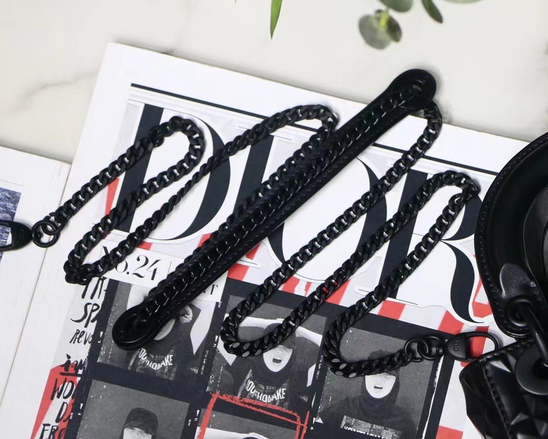 The Lady Dior bag epitomizes Dior's vision of elegance and beauty. Sleek and refined, the creation is timeless. Crafted in cannage calfskin, the bag showcases a graphic interpretation of the House's iconic motif. The tonal metal 'D.I.O.R.' charms offer an elegant allure. Featuring a removable chain shoulder strap, the miniature Lady Dior bag can be carried by hand or worn crossbody.
