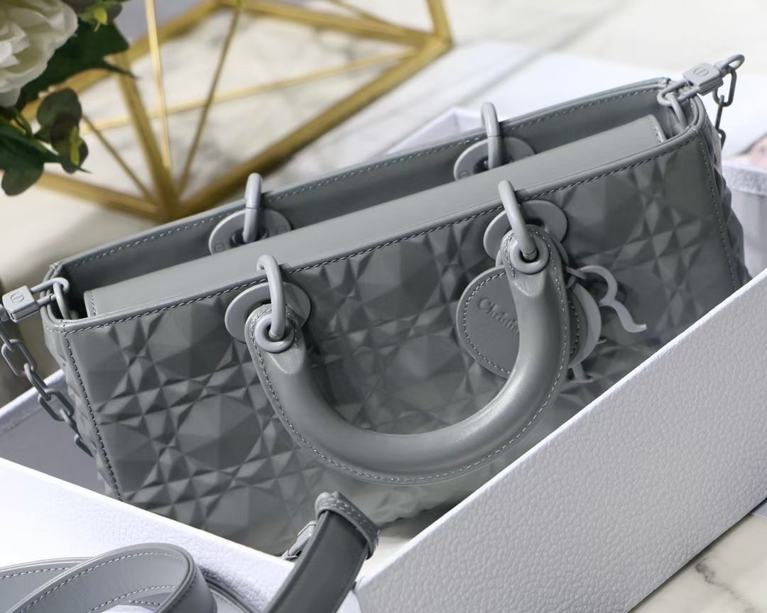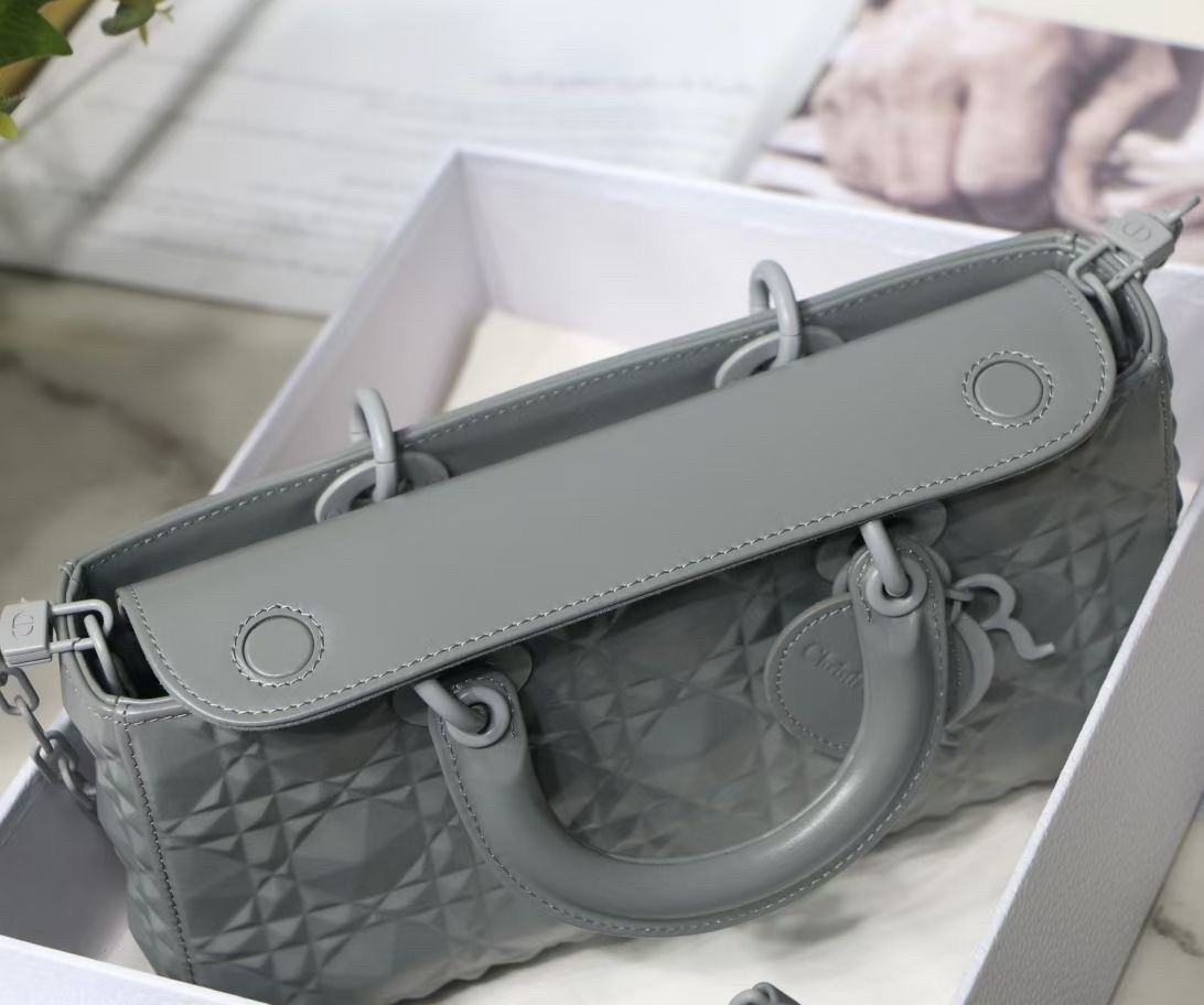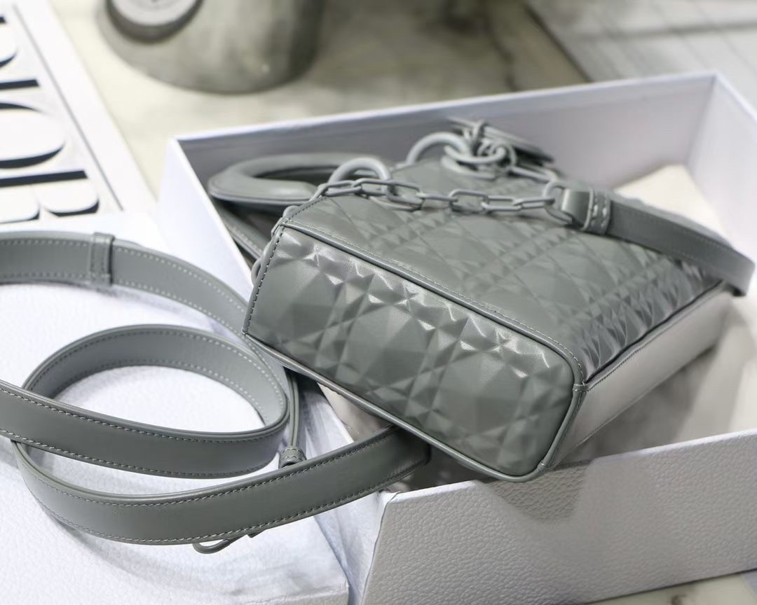 The Lady D-Joy bag captures the House's vision of elegance and beauty by showcasing the iconic streamlined aesthetic of the Lady Dior line. Crafted in Cannage calfskin featuring a Diamond motif, the refined and timeless style is enhanced by tonal matte metal 'D.I.O.R.' charms elegantly embellishing its silhouette. Featuring one removable chain shoulder strap and another adjustable and removable leather shoulder strap, the Lady D-Joy bag can be carried by hand, worn over the shoulder or crossbody as a daily companion.