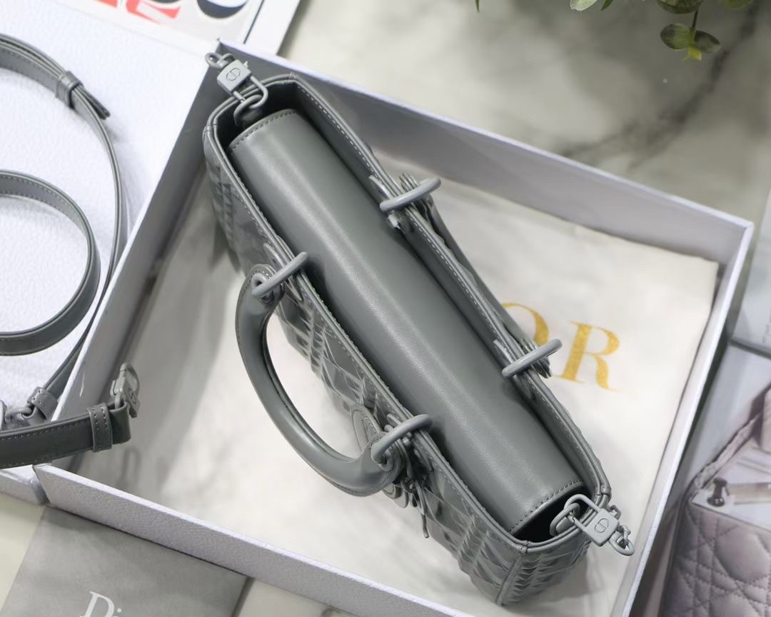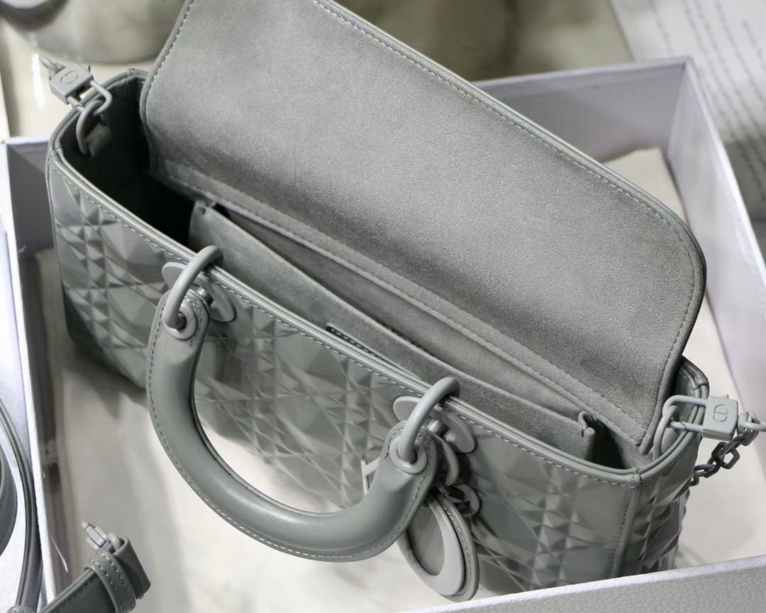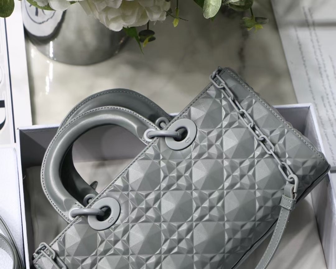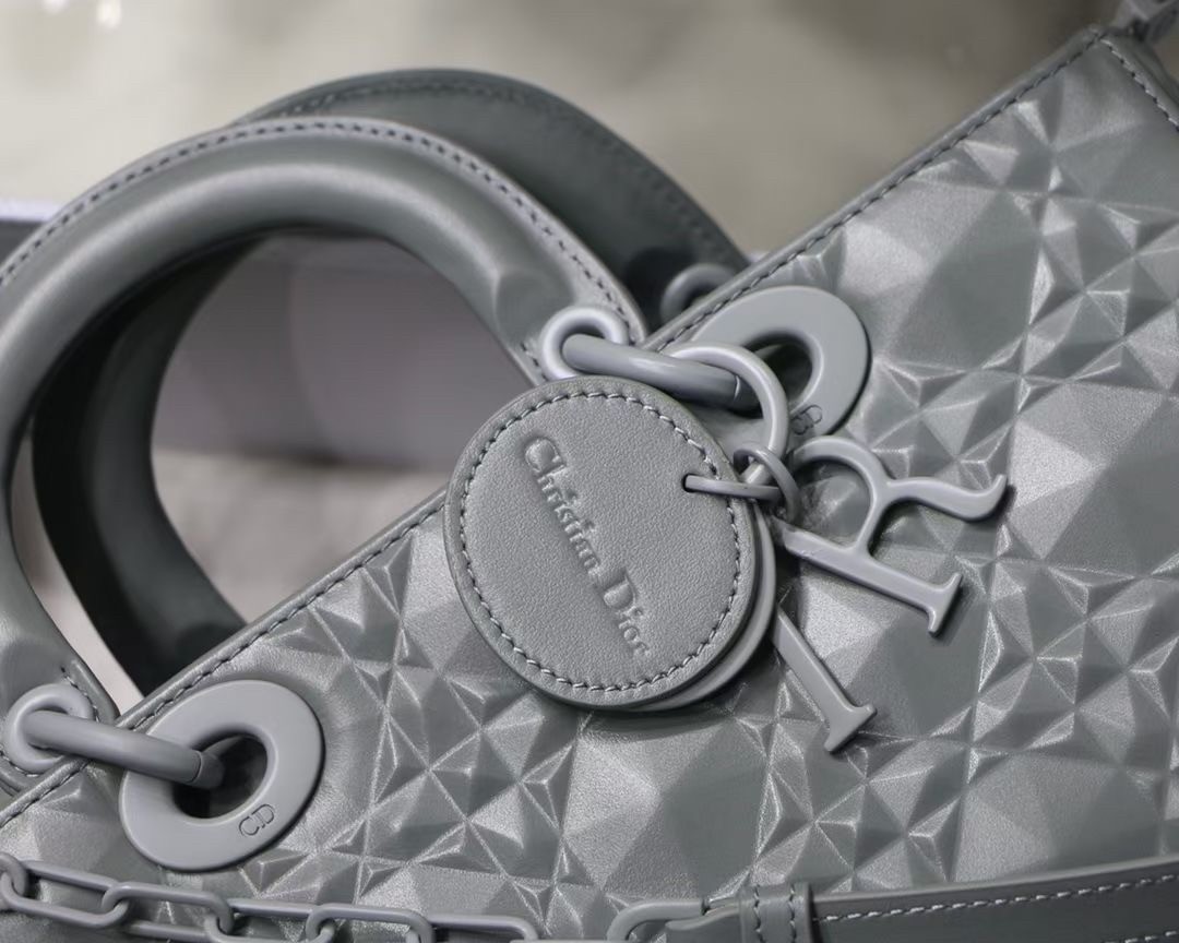 The Lady D-Joy bag captures the House's vision of elegance and beauty by showcasing the iconic streamlined aesthetic of the Lady Dior line. Crafted in Cannage calfskin featuring a Diamond motif, the refined and timeless style is enhanced by tonal matte metal 'D.I.O.R.' charms elegantly embellishing its silhouette. Featuring one removable chain shoulder strap and another adjustable and removable leather shoulder strap, the Lady D-Joy bag can be carried by hand, worn over the shoulder or crossbody as a daily companion.