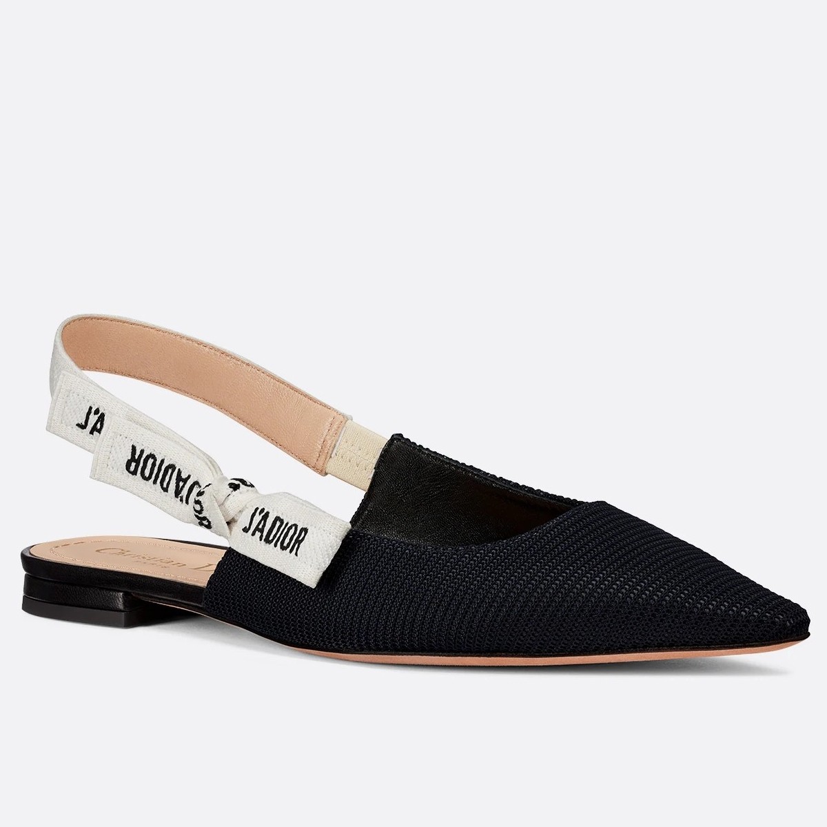 The J'Adior slingback ballerina flat is a prime example of the House's craftsmanship. The two-tone embroidered cotton 'J'ADIOR' ribbon boasts an elegant bow and the black technical fabric upper is passionately crafted in the Christian Dior Italian workshops. The shoe will lend a refined and sophisticated touch to any look.