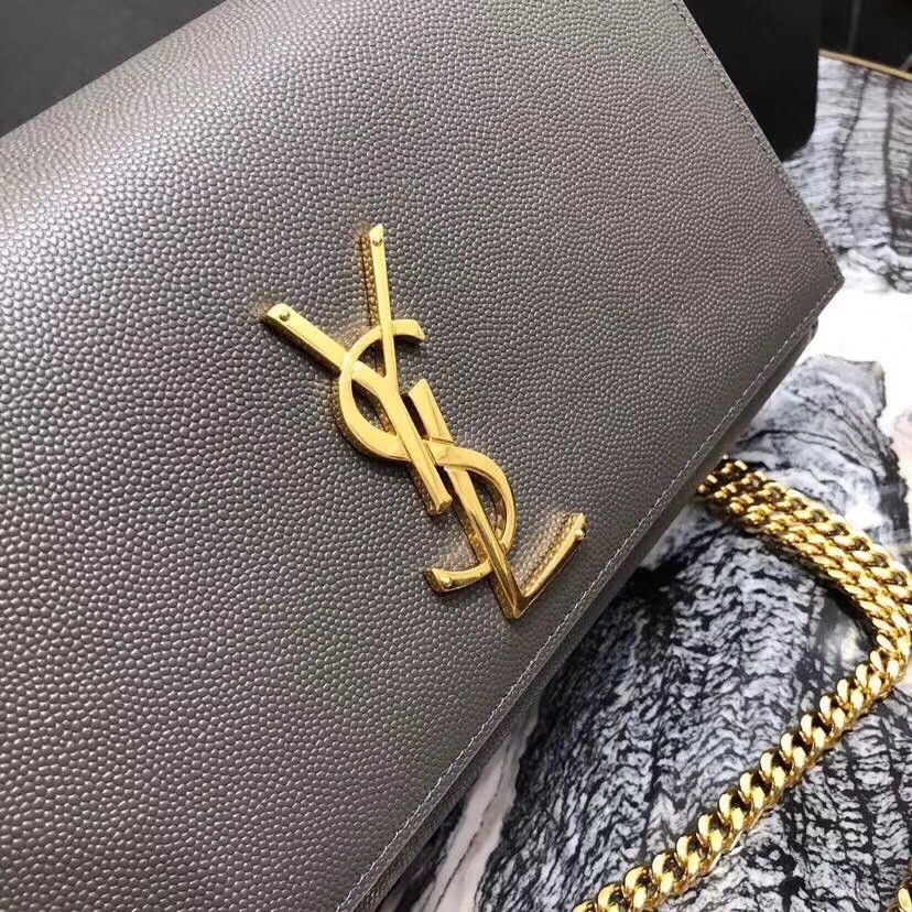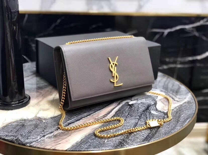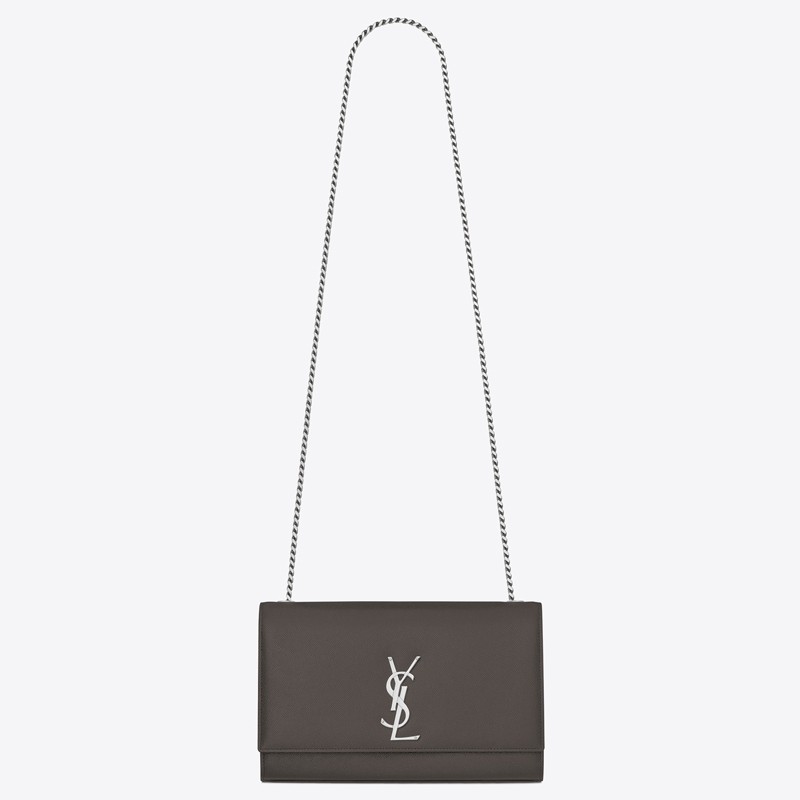 Lifted with the now iconic YSL logo lettering to the front dating back to the 1960s, the Kate shoulder bag from Saint Laurent is as timeless as it is glamorous. Exquistely crafted from grained leather, have it swing from the decadent silver or gold-tone chain shoulder strap. Open the flap front to reveal an interior perfectly sized for your mobile phone and lipstick.