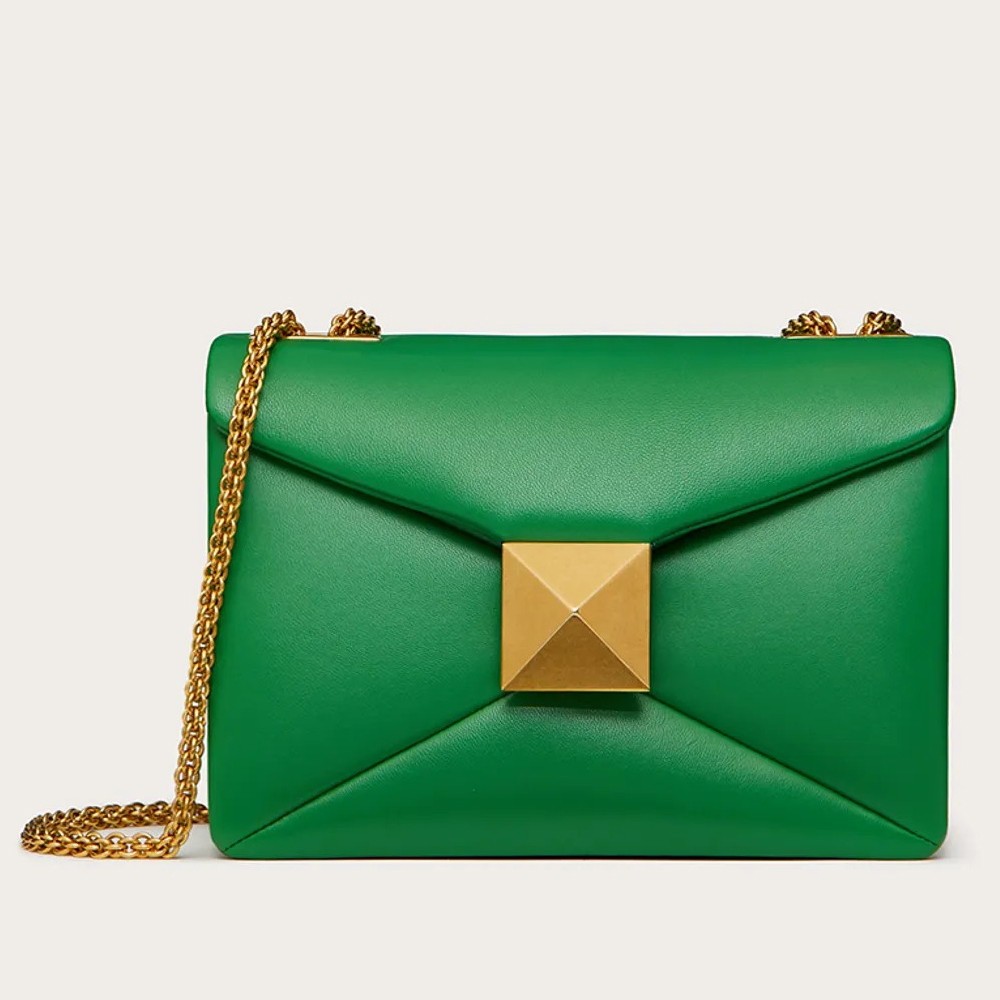 Valentino Garavani's One Stud shoulder bag is named for the single, oversized embellishment along the front flap, which makes it instantly recognizable as the brand's. It's designed from nappa leather in a sizable silhouette that holds all the essentials and has an internal compartment to keep you organized. The gold-tone chain straps adjust so you can wear it cross-body.