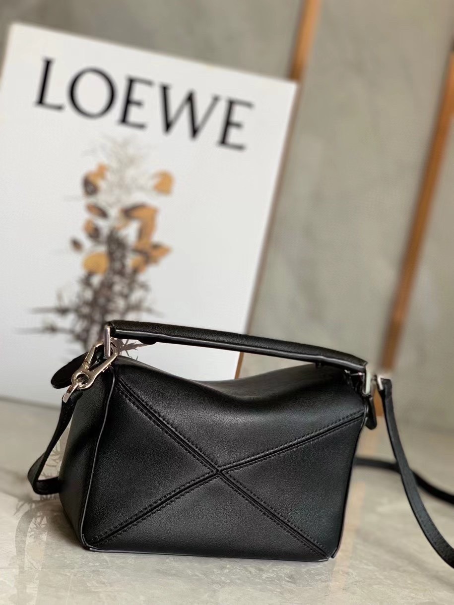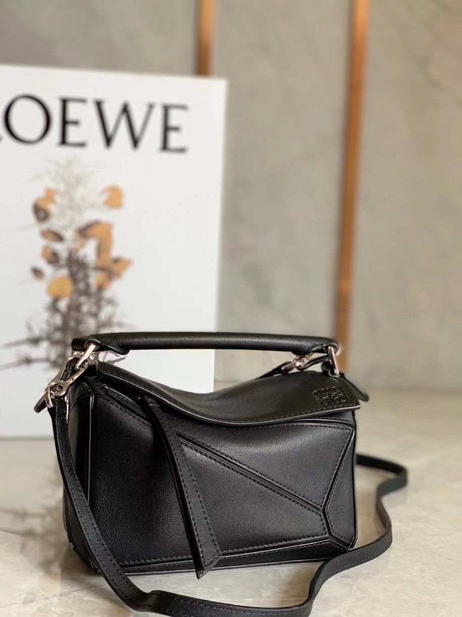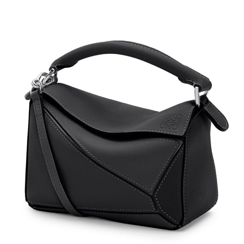 Loewe's 'Puzzle' bag is so popular that Jonathan Anderson re-imagines it in new sizes and colors every season - this one is scaled-down to a miniature size that'll hold just the necessities. It's been expertly made from calfskin leather and has hand-painted edges. It has a detachable strap, top handle and can be flattened like a clutch.