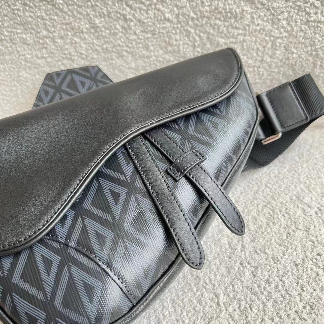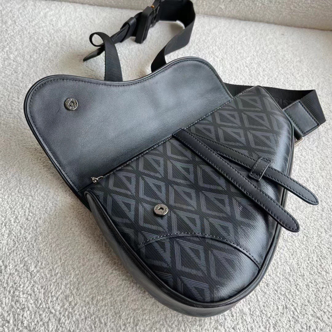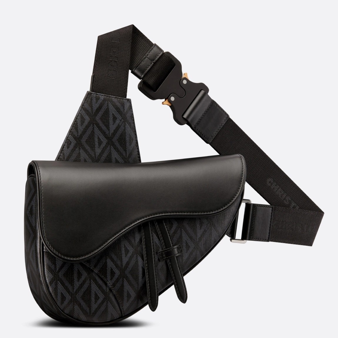 The Saddle bag presents a new take on Dior's classic piece with a black canvas version featuring the CD Diamond motif inspired by the House's archives. The style has a black smooth calfskin magnetic flap concealing a zip pocket that safely stores the essentials. The adjustable 'CHRISTIAN DIOR' jacquard strap allows the bag to be worn over the shoulder or crossbody.