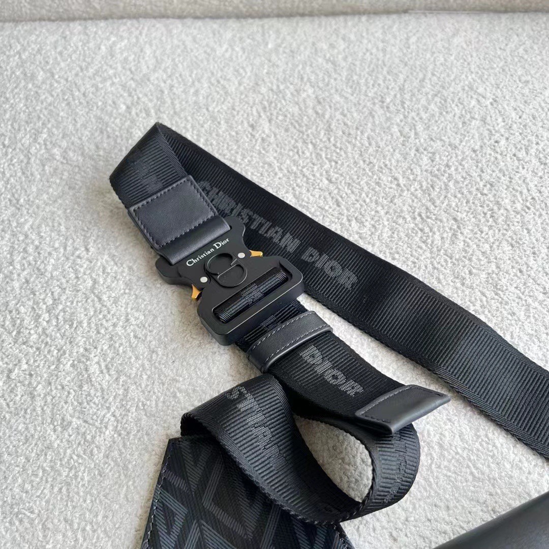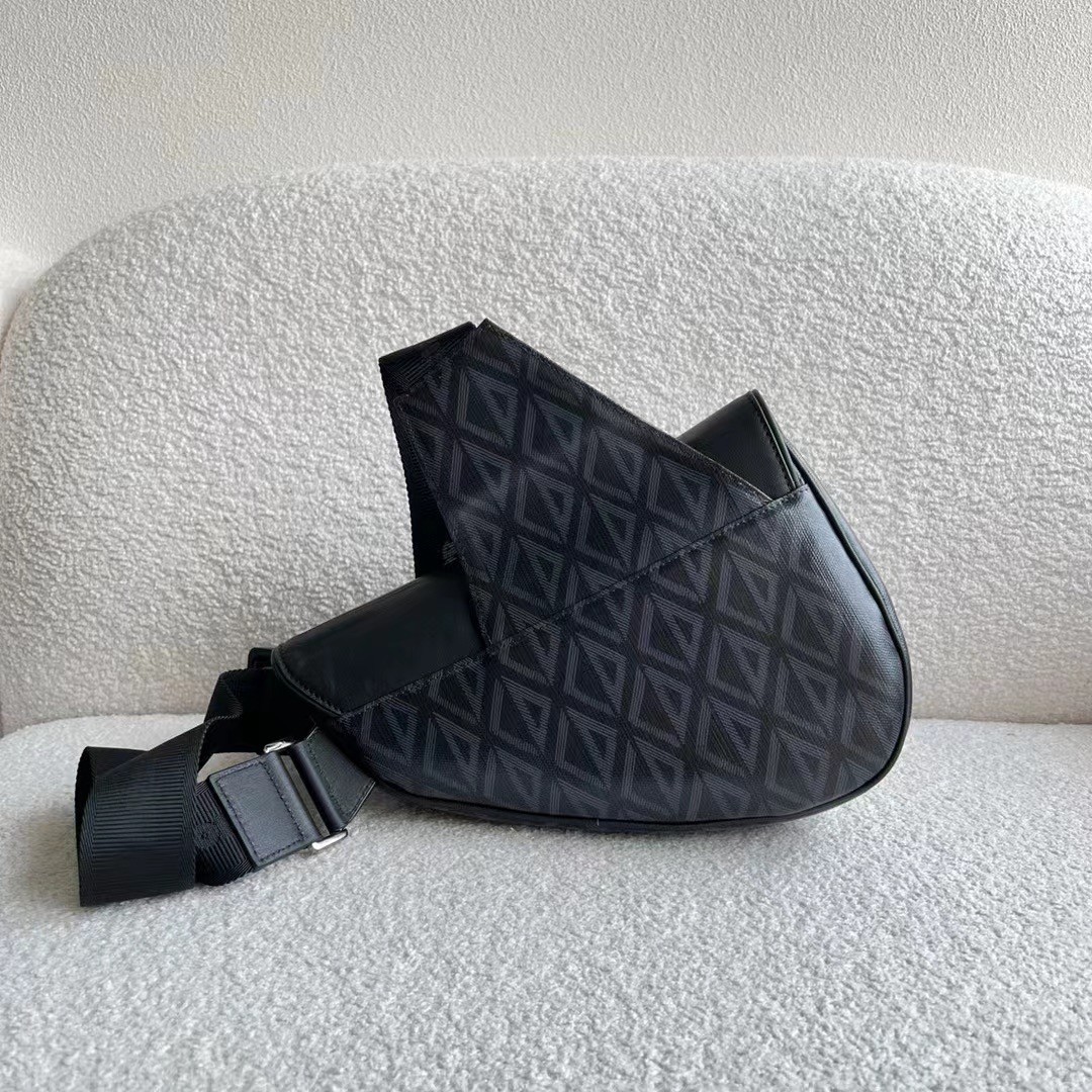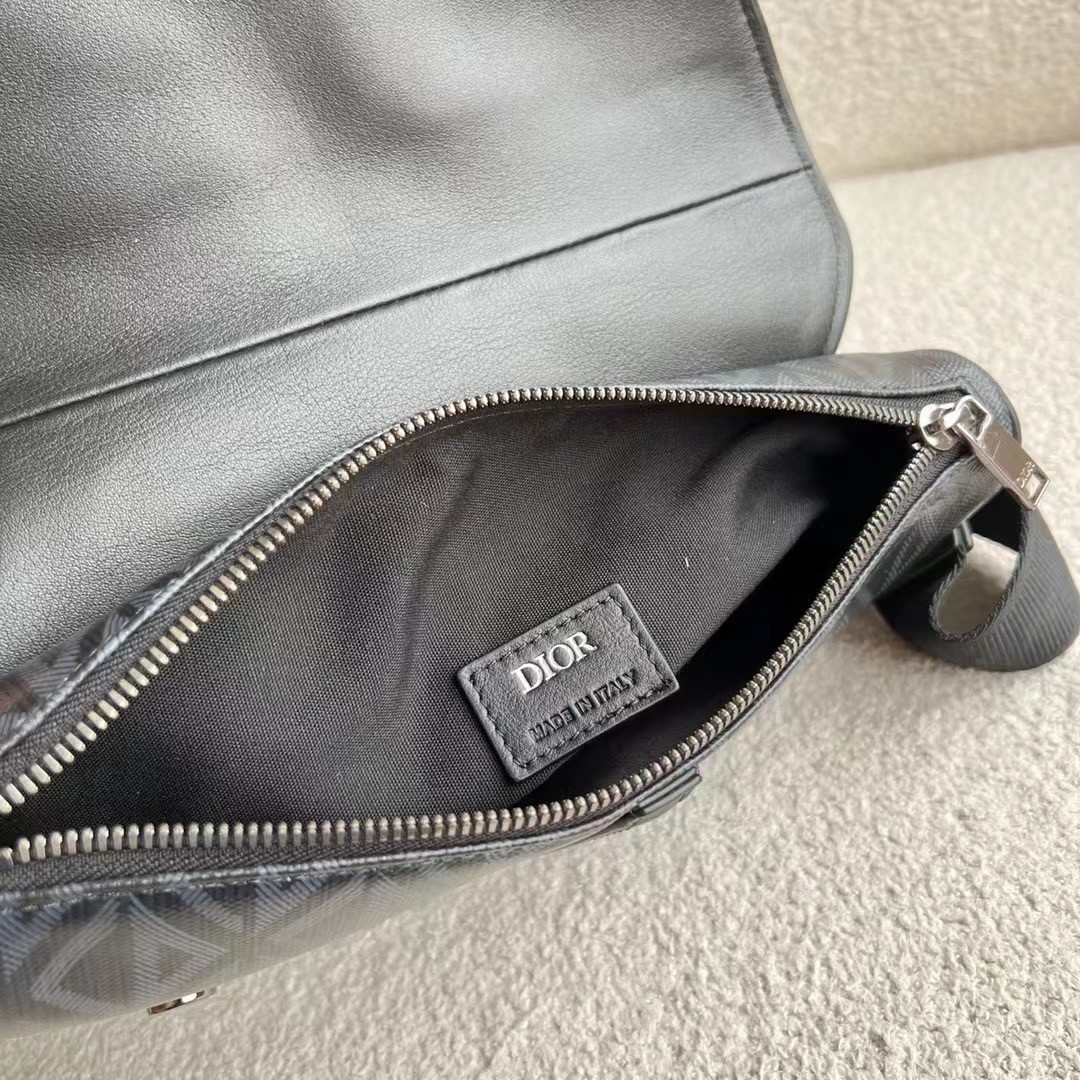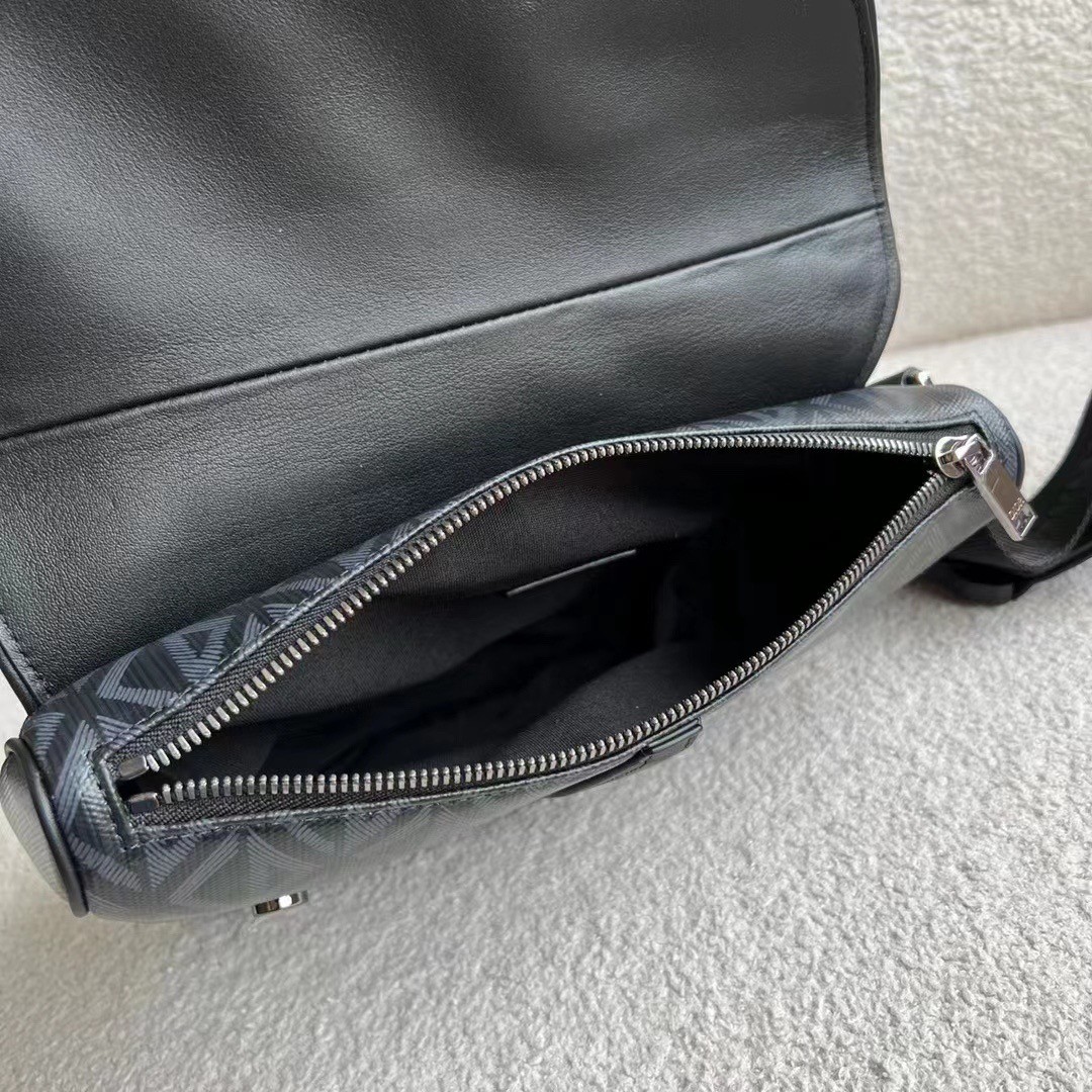 The Saddle bag presents a new take on Dior's classic piece with a black canvas version featuring the CD Diamond motif inspired by the House's archives. The style has a black smooth calfskin magnetic flap concealing a zip pocket that safely stores the essentials. The adjustable 'CHRISTIAN DIOR' jacquard strap allows the bag to be worn over the shoulder or crossbody.