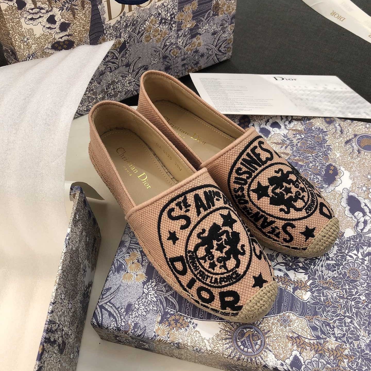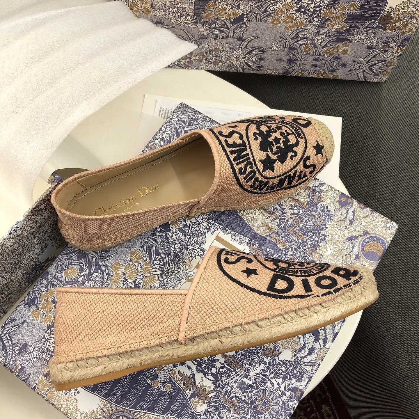 The Dior Granville espadrille features the Dior Union motif, showcasing the 'L'Union Fait la Force' motto inspired by the ateliers' jute bags and reaffirming the participative dimension so dear to Maria Grazia Chiuri. Crafted in beige embroidered jute canvas, the Dior Granville espadrille has a rope sole made in a traditional manner and may be coordinated with other Dior Union creations from the collection.