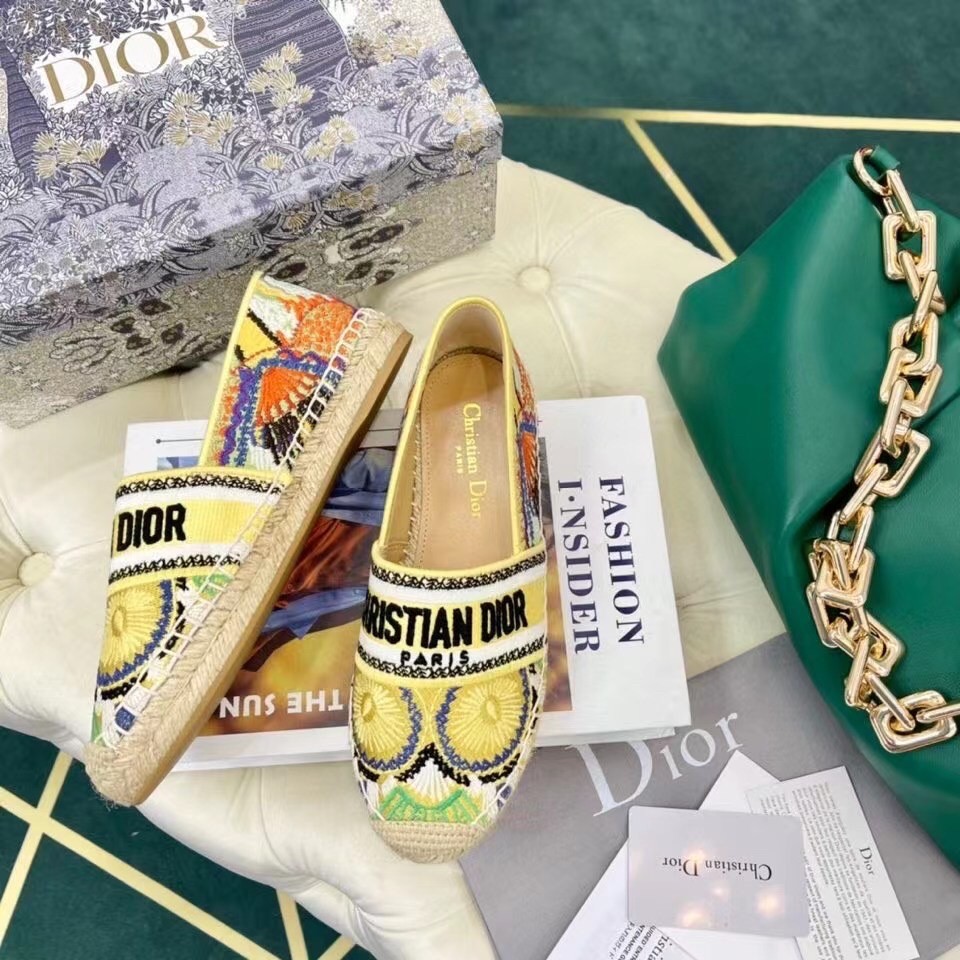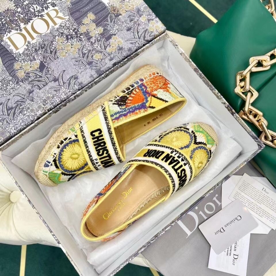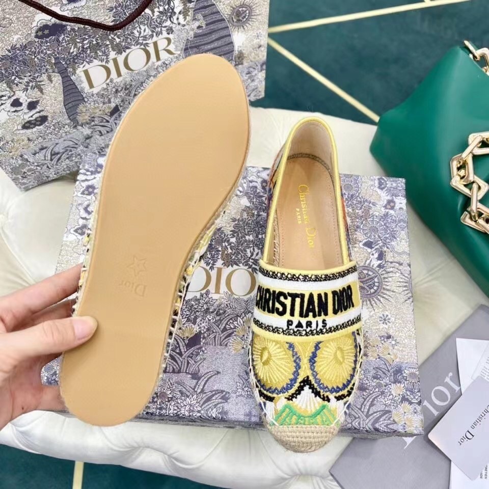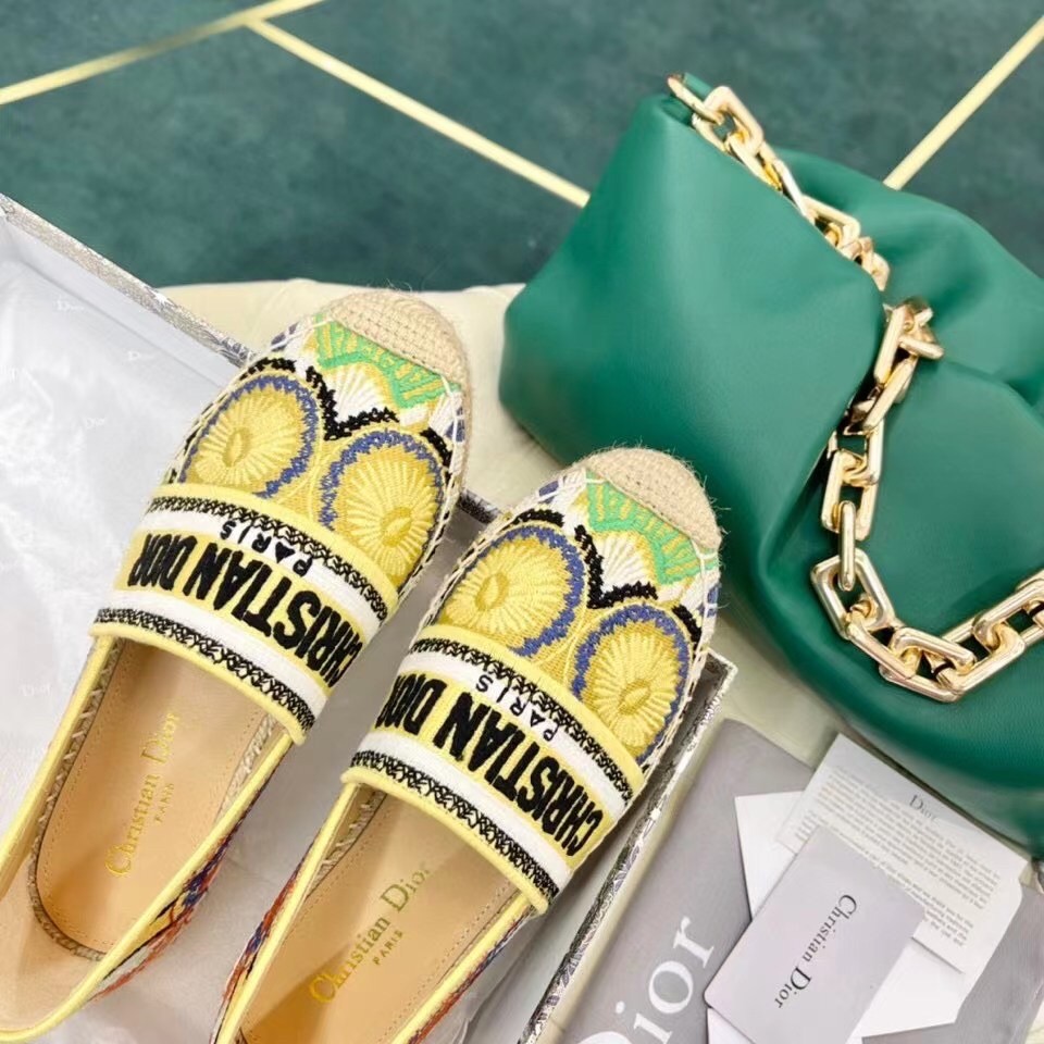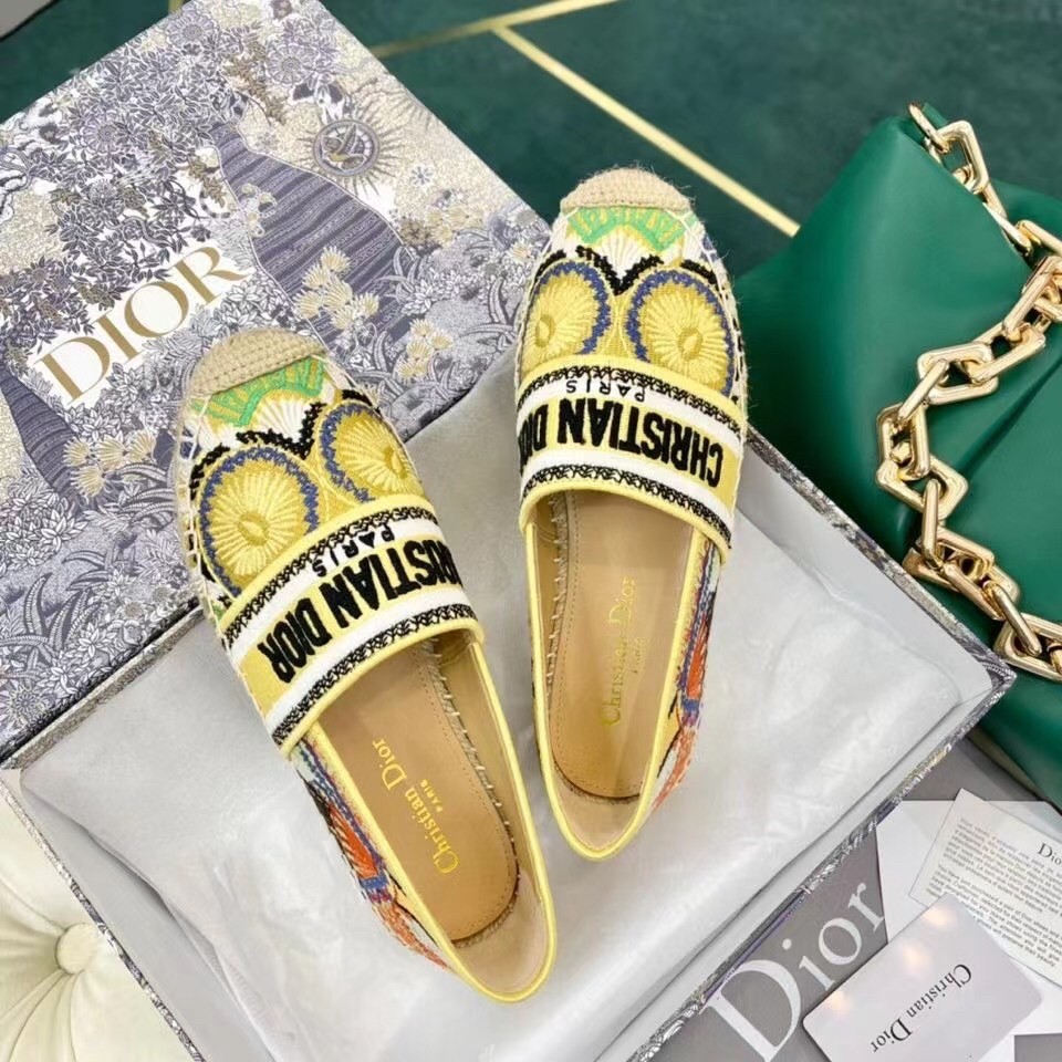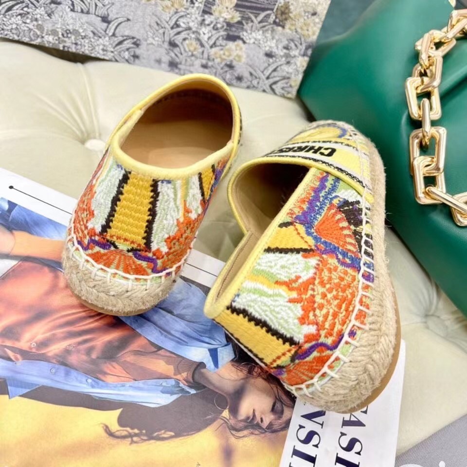The Dior Granville espadrille is distinguished by the Dior In Lights motif, a graphic design inspired by southern Italy’s festivals of lights. Crafted in multicolor embroidered cotton, the style is enhanced by emblematic House details, like the ‘Christian Dior’ signature on the upper. The shoe features a rope sole, handmade according to traditional methods. The espadrille can be paired with other Dior In Lights creations for a colorful look.
