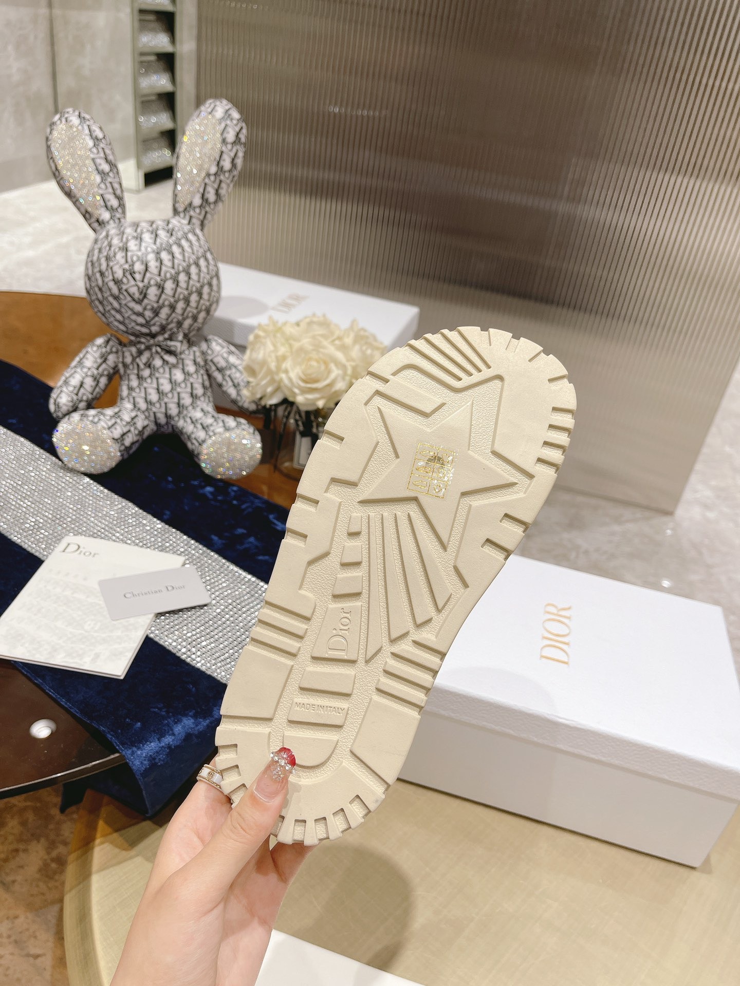 The Dway slide is offered in a chunky variation with sportswear appeal. Part of the Dioriviera capsule collection, the style highlights the hallmark Toile de Jouy motif, with its embroidered 'CHRISTIAN DIOR' signature, is completed by an anatomically shaped thick leather insole. Its design allows it to be slipped on easily and it may be coordinated with other Dioriviera creations from the collection.