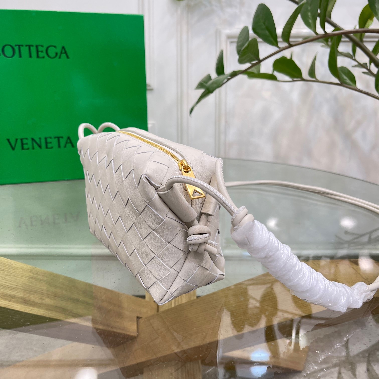 Bottega Veneta's Loop mini shoulder bag has been hand-woven from strips of supple lambskin using the house's iconic intrecciato technique. It's sized to fit the essentials and has slim straps detailed with signature knots. The 'White' hue will make it the focal point of any outfit.