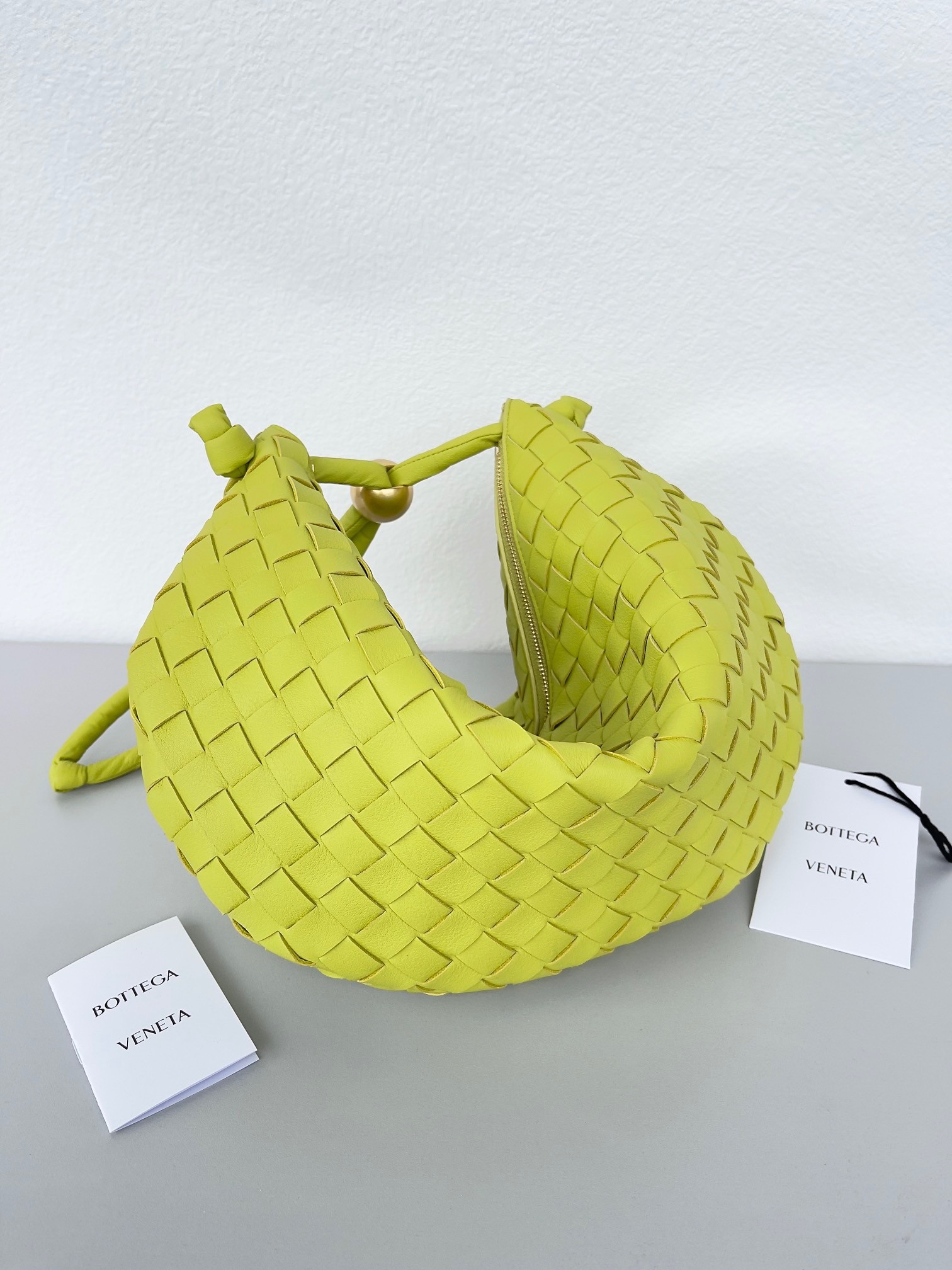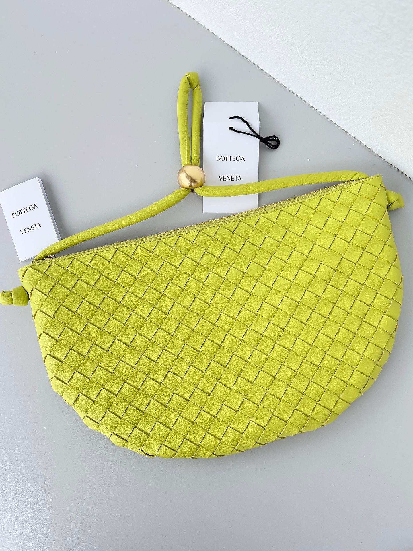 Bottega Veneta has released its bellowed Turn Pouch in fresh colourways, sizes and materials. First introduced in Wardrobe 03 as part of the small leather goods collection, Salon 03 sees the new iterations of the product come to fruition. It features gold metallic sliding sphere and can be carried on the shoulder. Crafted in the house's signature Intrecciato lambskin, the pouch is completed with a tone-on-tone tubular Nappa strap with iconic knot details.