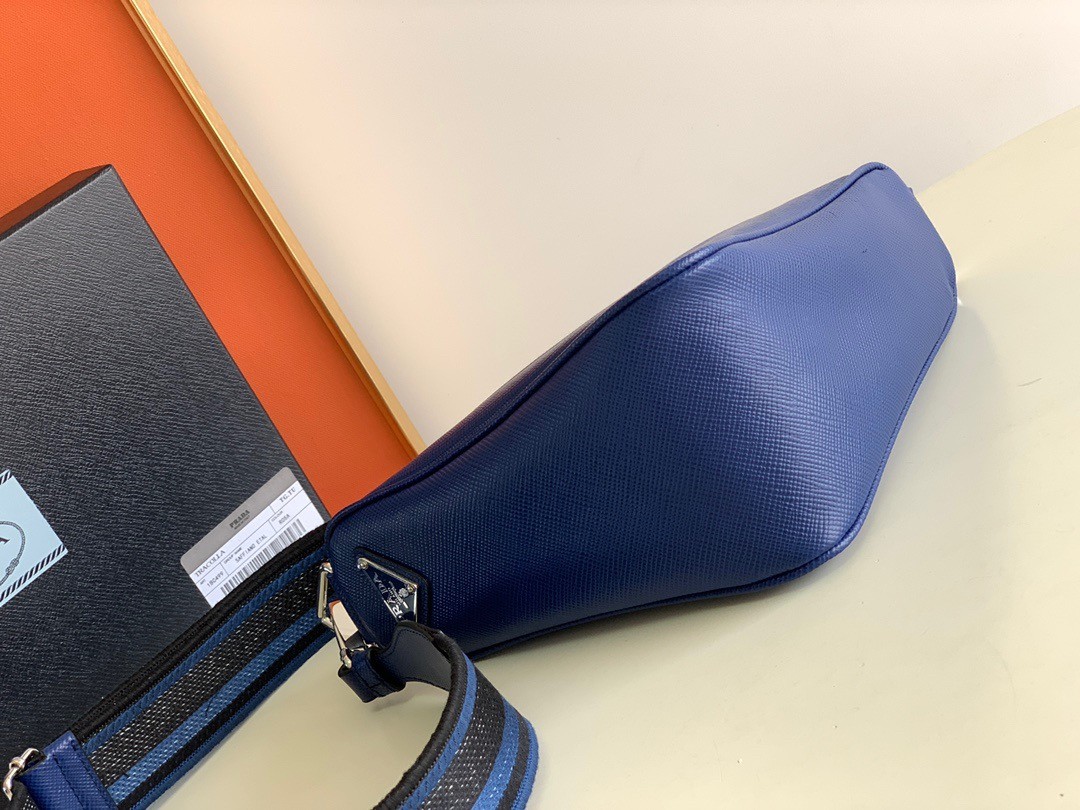 Prada Triangle Shoulder Bag In Blue Saffiano Calfskin