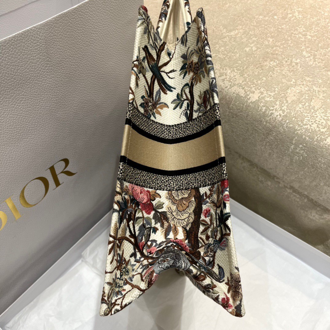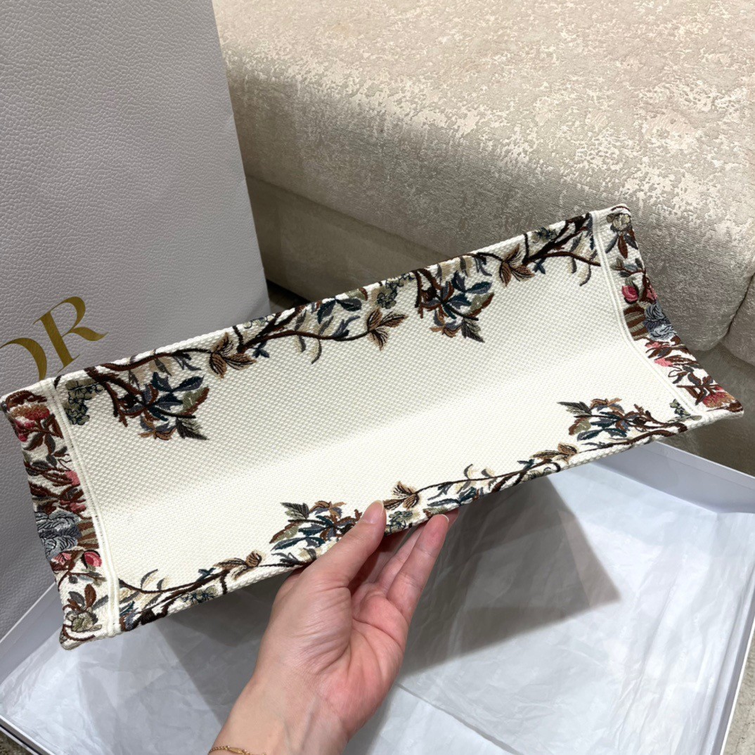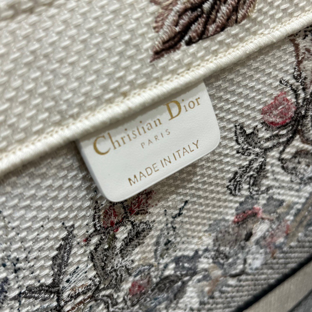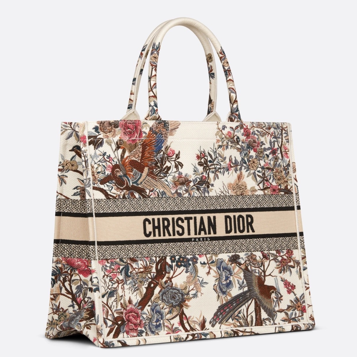 Introduced by Maria Grazia Chiuri, Dior's Creative Director, the Dior Book Tote has become a staple of the Dior aesthetic. Designed to hold all the daily essentials, the style is fully embroidered with an ecru multicolor Dior Jardin d'Hiver motif, showcasing a poetic and exotic interpretation of Mr. Dior's wall tapestries. Adorned with the 'CHRISTIAN DIOR PARIS' signature on the front, the large tote exemplifies the House's signature savoir-faire and may be carried by hand or worn over the shoulder.