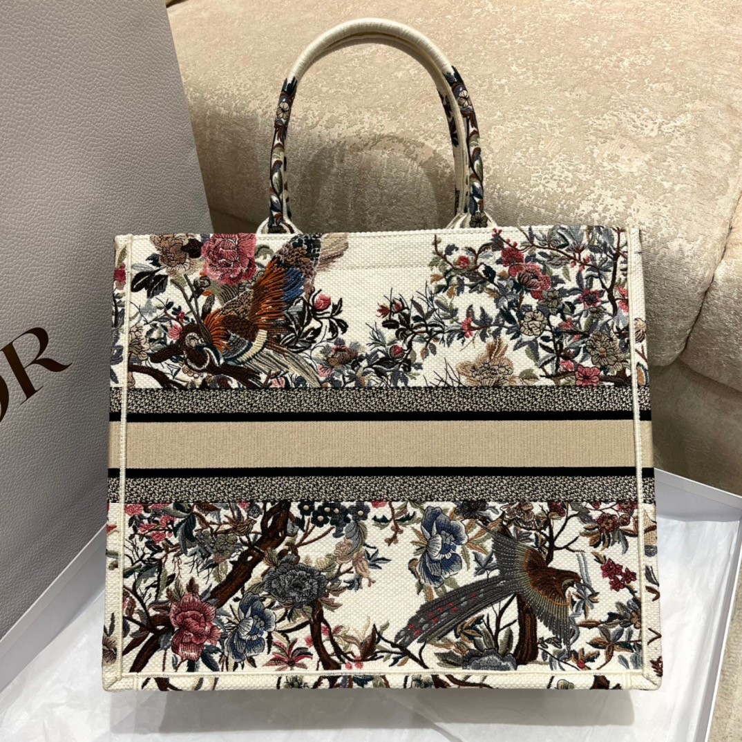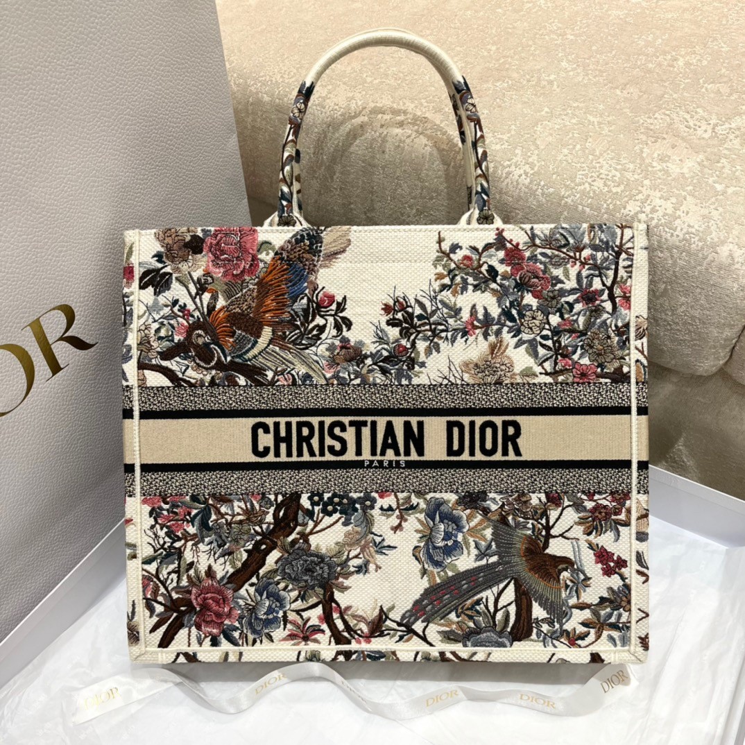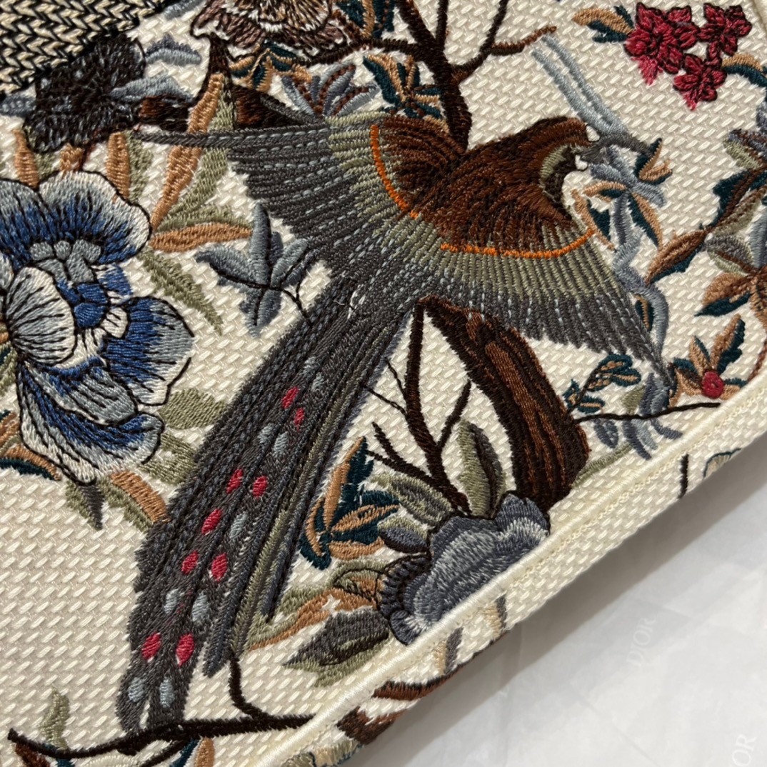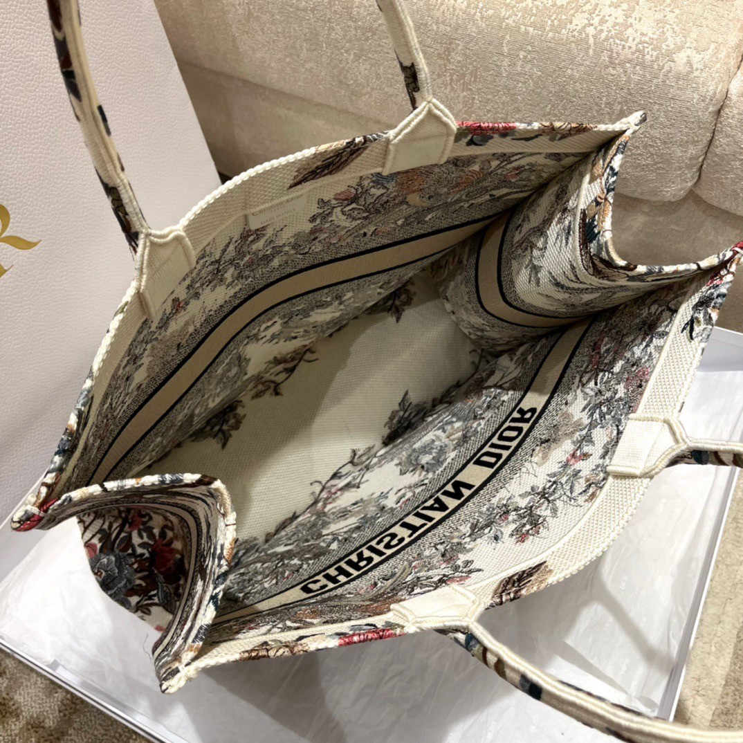 Introduced by Maria Grazia Chiuri, Dior's Creative Director, the Dior Book Tote has become a staple of the Dior aesthetic. Designed to hold all the daily essentials, the style is fully embroidered with an ecru multicolor Dior Jardin d'Hiver motif, showcasing a poetic and exotic interpretation of Mr. Dior's wall tapestries. Adorned with the 'CHRISTIAN DIOR PARIS' signature on the front, the large tote exemplifies the House's signature savoir-faire and may be carried by hand or worn over the shoulder.