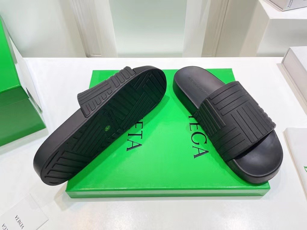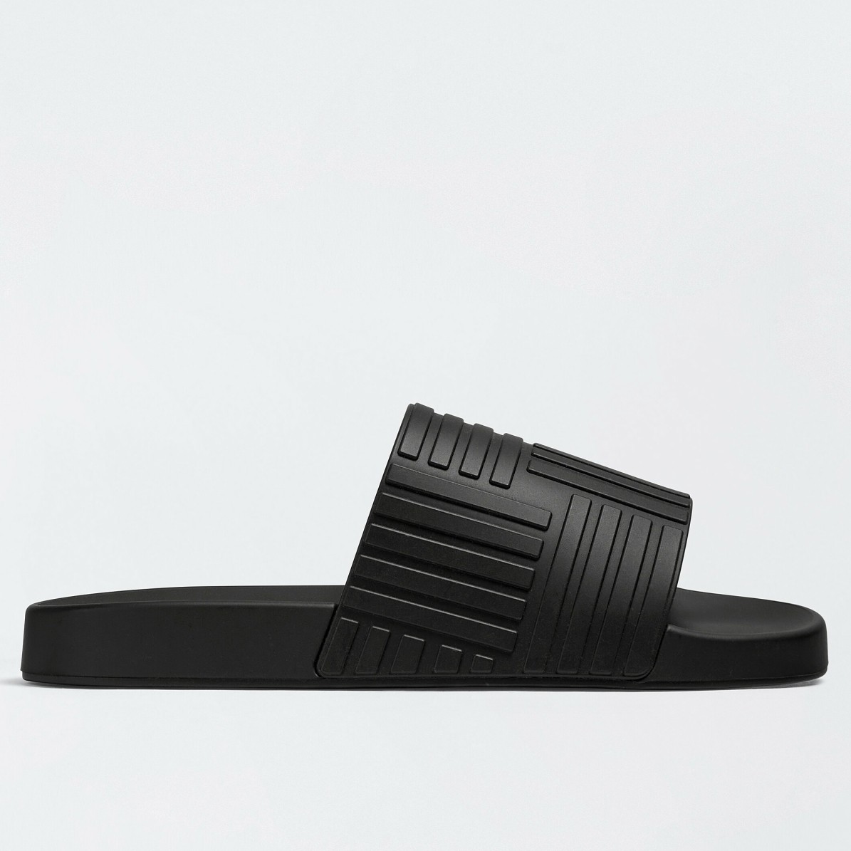 Bottega Veneta's Slider rubber slides are embossed with a tonal striped pattern - a subtle nod to the house's signature intrecciato motif. Wear them to the pool or with socks in cooler temperatures.