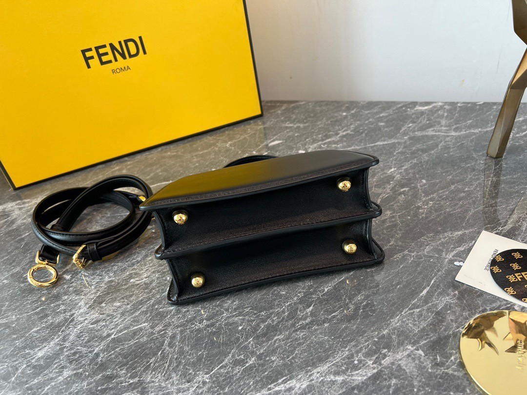 Introducing the Fendi Peekaboo Petite, a smaller version of the beloved bag that features pared-down proportions while retaining the playful and beautiful nature of the design. The Peekaboo is defined by its clean and minimal lines, trapeze shape, and overall cool attitude, and this new size retains all the elements of the bag we love with a contemporary flair. This version is intended to be worn crossbody, but the strap can be removed or changed to give the design a new look.