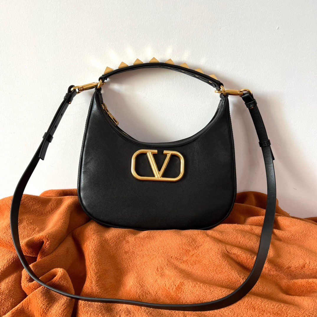 Valentino Garavani’s Stud Sign hobo bag is amongst the latest releases of the house’s coveted Roman Stud line. A new iteration of the namesake’s signature Rockstud first launched over a decade ago; the Roman Stud is a maxi update of this punkish embellishment, adorning the bag’s handle along with the famous VLOGO plaque in the centre. Carry yours by the removable cross-body strap or sling it over your shoulder to display this house icon with pride.