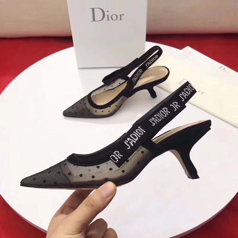 Arched over an irresistible comma-shaped heel, the J'Adior Pumps by Dior evoke the elegant femininity of the New Look years. Icons of the Fall-Winter 2017 collection, these slingbacks in nude and black embroidered net have been designed by Maria Grazia Chiuri. Adding her own personal touch, Dior's new artistic director has decorated them with a flat Swarovski diamante "J'Adior" bow and stamped the leather soles with Christian Dior's fetish star symbol.