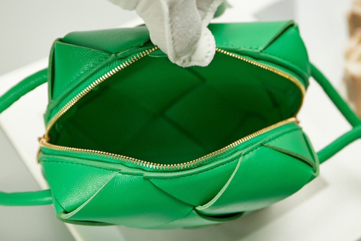 Defined by Bottega Veneta's signature woven leather construction, this mini Cassette camera bag in the brand's signature shade of green will certainly be a memorable addition to your everyday carryall collection. Equipped with a crossbody strap, this piece ensures versatility and timelessness.