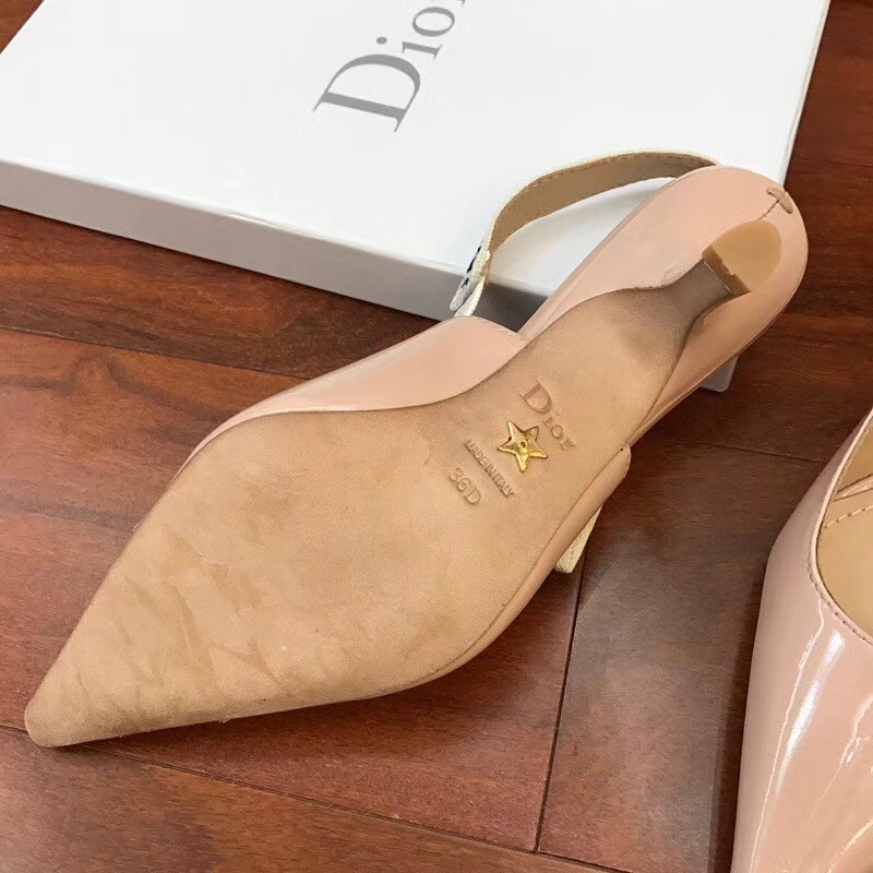 Dior "J'Adior" slingback pump in patent leather with J'adior embroidered ribbon and 6,5 cm comma heel, featuring leather sole with star accessory, one of Christian Dior's favourite symbols.