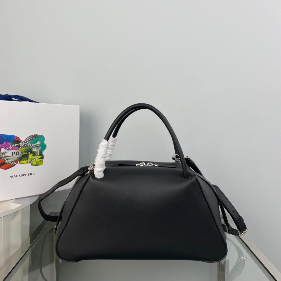 The Prada Supernova Bag made its big debut at the house's Fall/Winter 2022 Womenswear Show, decorating the arms of models walking down the runway in Prada's edgy-chic ensembles. A study of the lines characterizes this medium leather handbag. It stands out for its absolutely elegant silhouette emphasized by the zipper closure with a sinuous effect. The enameled metal triangle logo decorates the accessory - the perfect handbag to accompany you to any and every event no matter the time of day.
