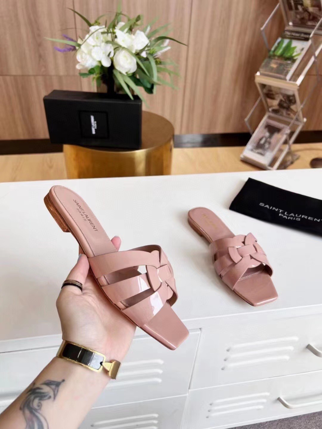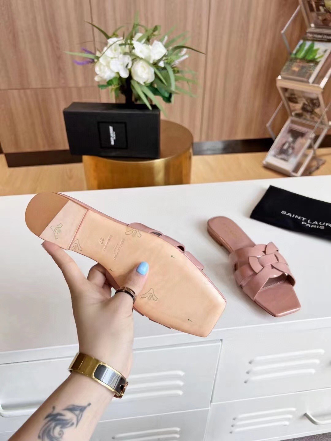 If you're a fan of Saint Laurent's 'Nu Pieds' slides, there's even more reason to add this pair to your wish list - the powder pink hue pairs well with just about any color. Made from glossy patent leather, they have signature woven straps and squared footbeds. Don't miss the black or white versions, either.
